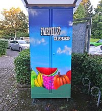 Bistum Limburg Lebensmittel teilen statt wegwerfen Oksana Schäfer WIESBADEN-GRÄSELBERG, 19.12.2023 Lebensmittel teilen statt wegwerfen Der Fairteiler-Schrank vor St. Hedwig in Wiesbaden erfreut sich z