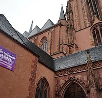 Bistum Limburg Solidarität, von weitem zu sehen A. Zegelman / Bistum Limburg Solidaritätsbekundung am Bartholomäusdom in der Frankfurter Altstadt. FRANKFURT, 05.12.2023 Solidarität, von weitem zu sehe