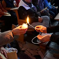 In der Mitte wartet das Friedenslicht