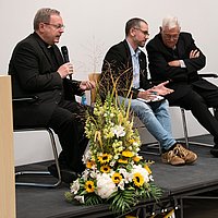 Bistum Limburg Kirche soll Dialog und Hoffnung fördern Bericht A. Thiele/Bistum Limburg Auf dem Podium sprachen Bischof Georg, P. Sosa (im Bild mit seinem Übersetzer) und Pater Hollweck SJ über die La