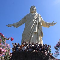 Bistum Limburg Von Palmen, Tänzen und Mangos Bericht Selina Schneider Reisegruppe unter der Jesus Statue im Hundred Islands Nationalpark Limburg, 22.02.2024 Von Palmen, Tänzen und Mangos Im Februar is