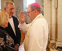 Bistum Limburg Staffelstabübergabe im Kommissariat in Hessen S.Schnelle/Bistum Limburg Wolfgang Pax (rechts) gibt die Leitung des Kommissariats an Tonke Dennebaum (links) weiter. Zur Staffelstabüberga