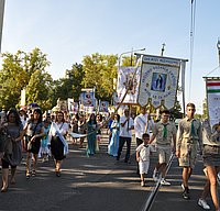Bistum Limburg „Die ganze Welt ist heute hier zusammen“ A. Zegelman / Bistum Limburg Marienprozession durch Bockenheim - mit geschmückten Bannern, traditioneller Kleidung und Blumen. FRANKFURT, 09.09.