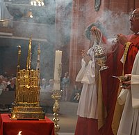 Bistum Limburg (K)ein Widerspruch in sich A. Zegelman / Bistum Limburg Stadtdekan Johannes zu Eltz und Ministrant:innen stehen vor der Bartholomäus-Reliquie. FRANKFURT, 27.08.2023 (K)ein Widerspruch i