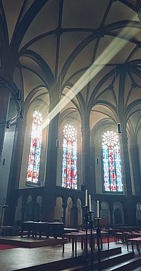 Bistum Limburg St. Bonifatius und St. Birgid empfangen Bischöfe J. Schröder Fenster der Kirche St. Bonifatius LIMBURG/WIESBADEN, 22.09.2023 St. Bonifatius und St. Birgid empfangen Bischöfe Die Vollver