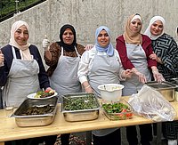 Bistum Limburg Vielfalt auf dem Teller C. Beese / Bistum Limburg Das Buffet ist angerichtet. Hier geben die Frauen aus Syrien und der Türkei das Essen aus. DILLENBURG, 22.09.2023 Vielfalt auf dem Tell
