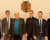 Bistum Limburg "Mit den Menschen näher zu Gott kommen" Bistum Limburg Freuen sich auf kommenden Samstag: (von li.): Diakon Mathias Wolf, Moritz Hemsteg, Paulo Caldeira Pereira, Leon Pişta, Michael Sch