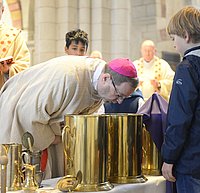 Bistum Limburg Die große Erzählung Bistum Limburg Der Bischof hauchte über das Öl für den Chrisam, um das Wirken des Heiligen Geistes zu symbolisieren. LIMBURG, 16.04.2019 Die große Erzählung Taufe, F
