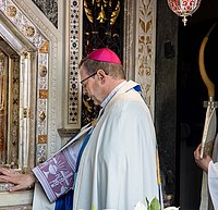 Bistum Limburg Ein Gottesdienst mit Herzbeben Achim Pohl Nach dem Gottesdienst betete Bischof Bätzing am Gnadenbild. KEVELAER, 01.05.2020 Ein Gottesdienst mit Herzbeben Im Mai beginnt die Wallfahrtsze