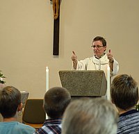 Bistum Limburg Statt Briefen die Frohe Botschaft zu den Menschen tragen Bistum Limburg "Es ist spitze, dass ihr da seid." - Schwester Claudia begrüßt die Kinder zum Weggottesdienst in Horressen. Mit d