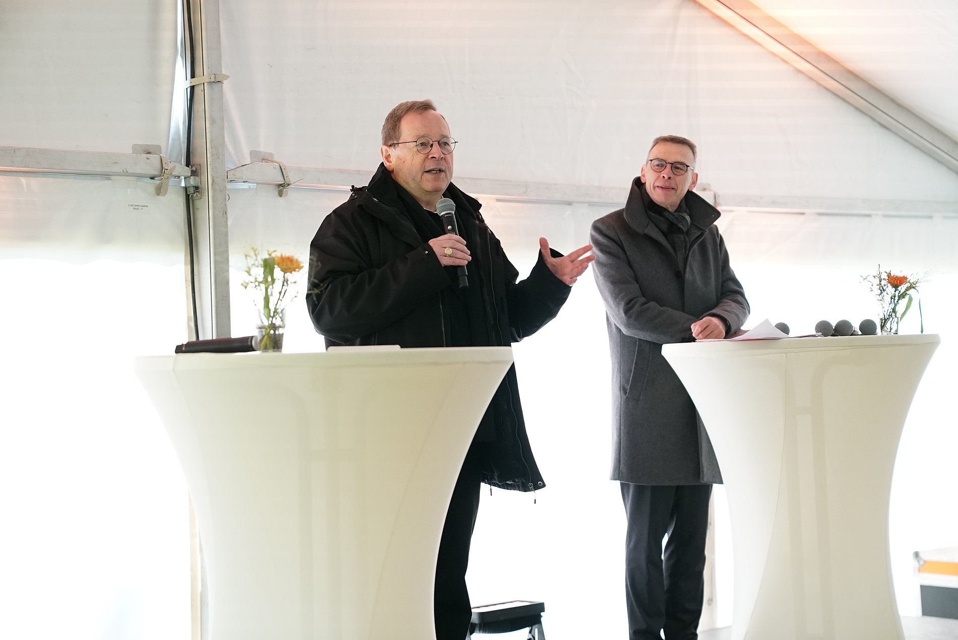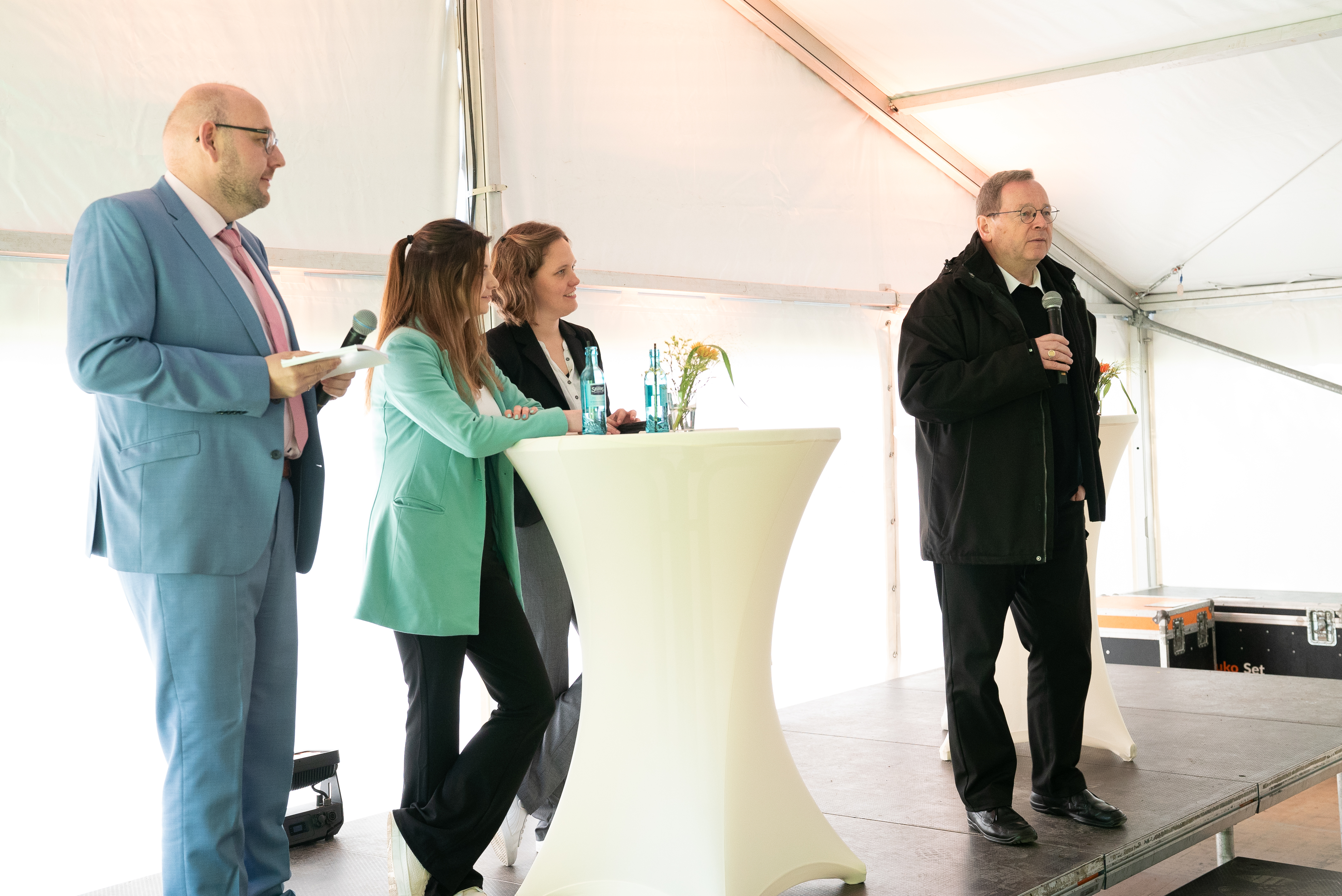 Nach dem gemeinsamen Gottesdienst sprach Bischof Dr. Georg Bätzing im Bischofsgarten ein Grußwort. Er dankte den Mitarbeitenden für ihre Arbeit und erinnerte daran, immer neu denken zu lernen und nie den Menschen aus den Augen zu verlieren. Leitend sei die Frage: „Für wen sind wir da?“. Generalvikar Dr. Wolfgang Pax gab einen Überblick über die aktuellen Entwicklungen im Bistum. Er sprach den 2018 begonnenen Trafo-Prozess an, der Kulturwandel und Kirchenentwicklung zusammen denke. Als konkretes Beispiel für den Umgang mit den Ergebnissen der Kirchenmitgliedschaftsuntersuchung nannte der Generalvikar die Aktion „Nie wieder!“. Damit positioniere sich das Bistum gegen Rechtsextremismus und zeige, dass es die Sorgen der Menschen mit Blick auf die Veränderung der Debattenführung in Deutschland ernst nehme.