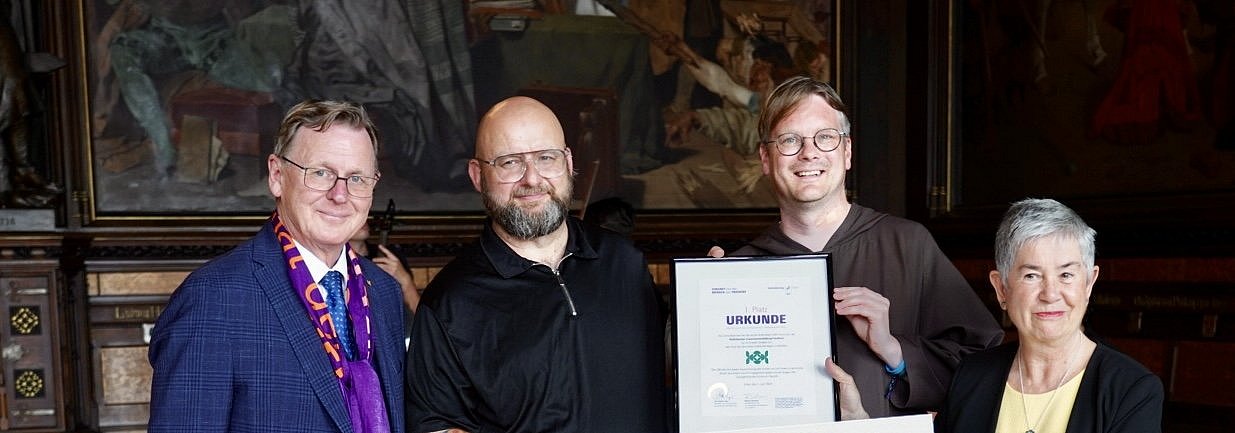 Der Ministerpräsident des Freistaats Thüringen würdigte das Engagement des Projektes und machte deutlich, wie wichtig es heute sei, dass sich Kirche da einbringe, wo andere sich zurückzögen und gesellschaftliche Präsenz zeige. „Die Zeit stellt uns fast täglich vor neue Herausforderungen. Viele fragen sich, was die Fundamente sind, die helfen, mit all den Veränderungen zu Recht zu kommen“, so Ramelow. Die Kirche könnte hier Antwortoptionen bieten. Die Straßenuni sei ein schönes Beispiel dafür, wie Kirche bei den Menschen sein könne und Relevanz gewinne, weil sie deutlich mache, dass es ihr um mehr als um Dienstleistung gehe. „Der Aggiornamento-Preis ist wichtig, weil wir Projekte und Menschen würdigen und ihnen danken, die sich tagtäglich für Teilhabe, Inklusion, für Geflüchtete, für Obdachlose, für die Menschen im globalen Süden, allgemein für ihre Mitmenschen in wunderbare Weise einsetzen. Ihnen allen gilt meine Hochachtung“, sagte Ramelow.
