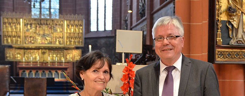 FRANKFURT.- „Mit ganzem Herzen für die Menschen und für die Sache“ einzutreten: Das Wort aus der Laudatio von Patricia Nell, langjährige Leiterin der katholischen Beratungs- und Informationsstelle punctum, trifft wohl auf beide Preisträger zu, die am Sonntag, 28. August, mit der Bartholomäusplakette der Stadtkirche Frankfurt für ihr vielfältiges ehrenamtliches Engagement geehrt wurden.