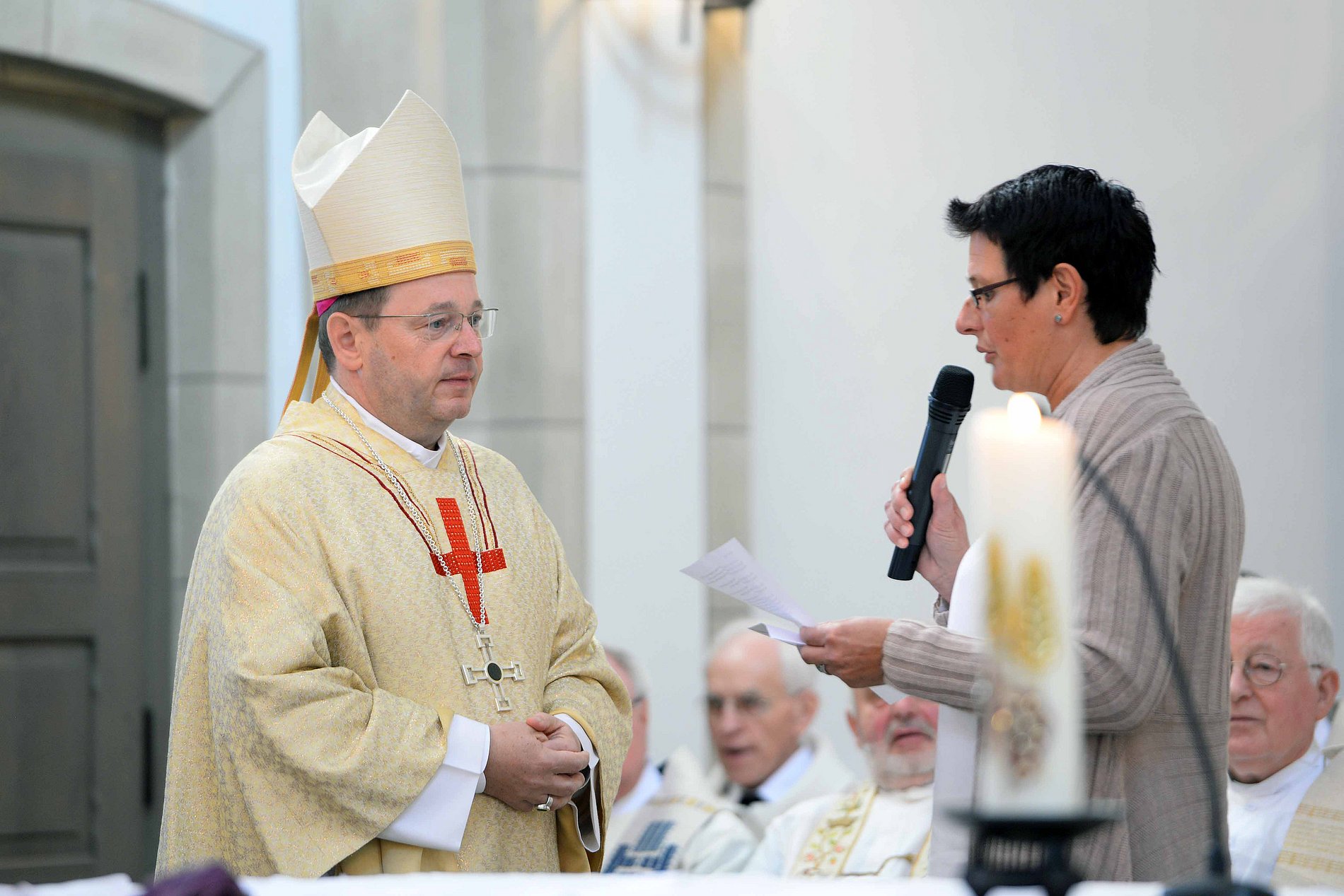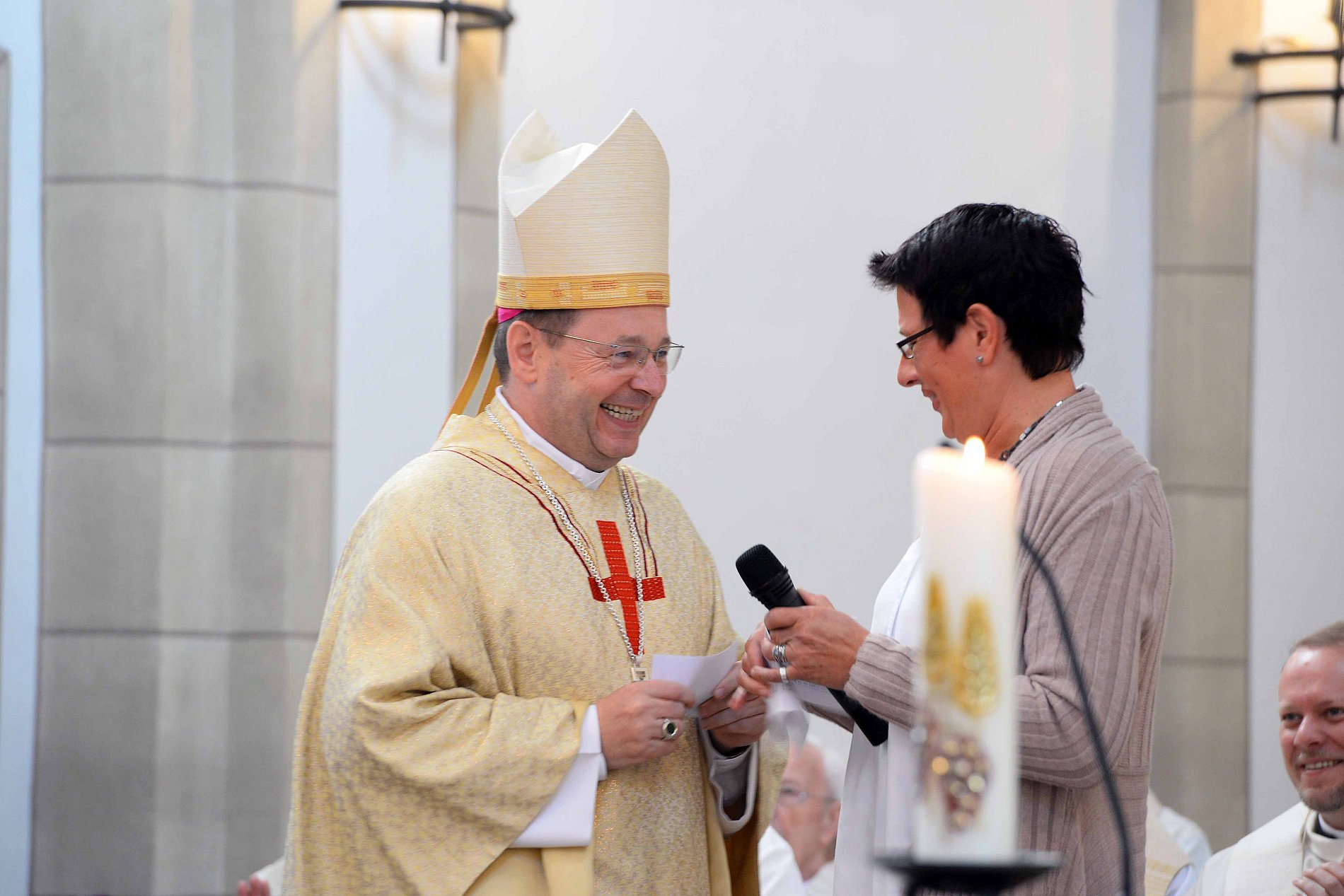 Er blickte auch auf die Ratschläge des Lesungstextes, die deutlich machten, was im Amt und Leben eines Gemeindeleiters wichtig ist. Sie werden im Brief des Apostels Paulus an Timotheus als "Mann Gottes" benannt. Die Menschen, so Bischof Georg, vertrauen darauf, dass ihnen Seelsorger und Seelsorgerinnen helfen, Brücken zu Gott zu schlagen. Vor allem, indem sie beten, segnen und durch die Verkündigung Inspiration für das persönliche Glaubensleben vermitteln. "Und es irritiert die Gläubigen darum so schwer, wenn ihre Geistlichen ungeistlich leben, wenn sie nie Zeit haben, nicht hörbereit und nicht gemeinschafts- und kritikfähig seien; wenn ihr Lebensstil nicht im Einklang steht mit dem Evangelium", so der Bischof. "Mann Gottes" zu sein, höre sich gut an. Bischof Georg sieht darin eine hohe Anforderung an sich selbst. "Wer in der Kirche zum Dienst der Leitung berufen ist, der ist kein Profi, der schon immer alles weiß und alles kann. Er ist ein Mensch auf dem Weg, unterwegs mit anderen, um Jesus zu folgen", sagte Bischof Georg.