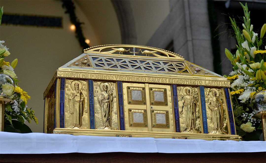 Prozession mit Kreuzreliquie und Reliquienschrein