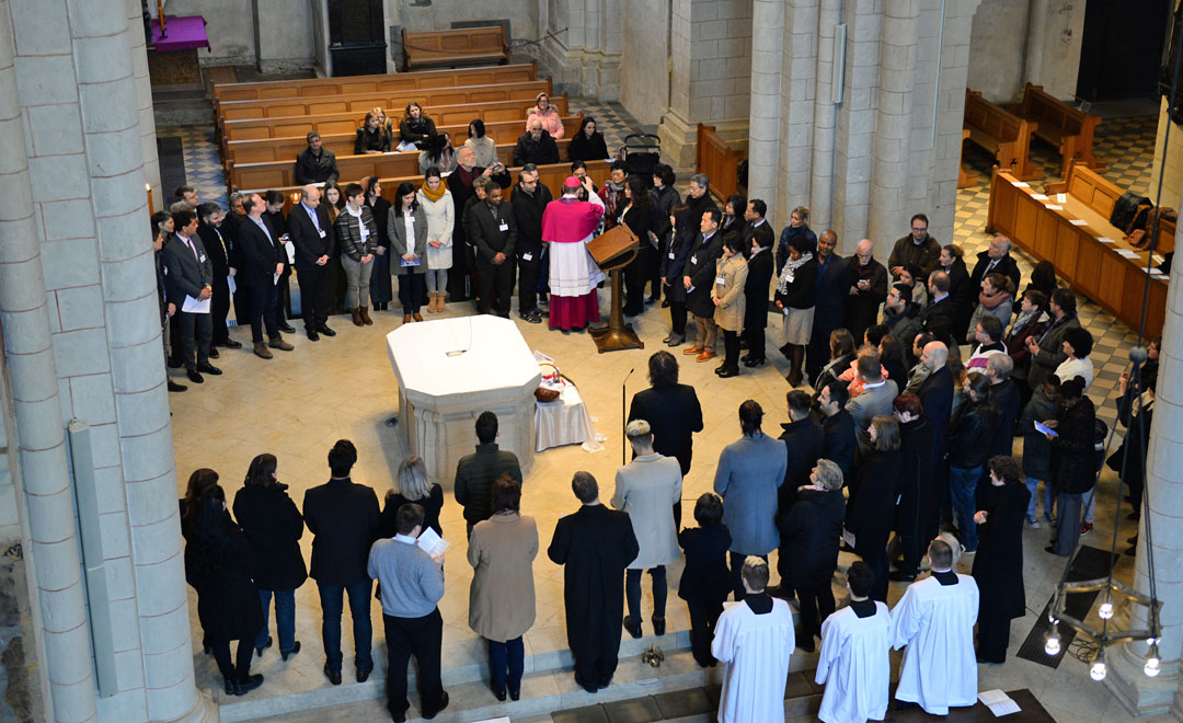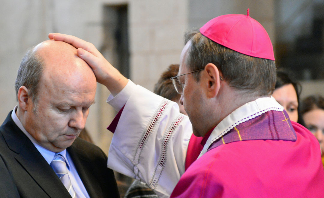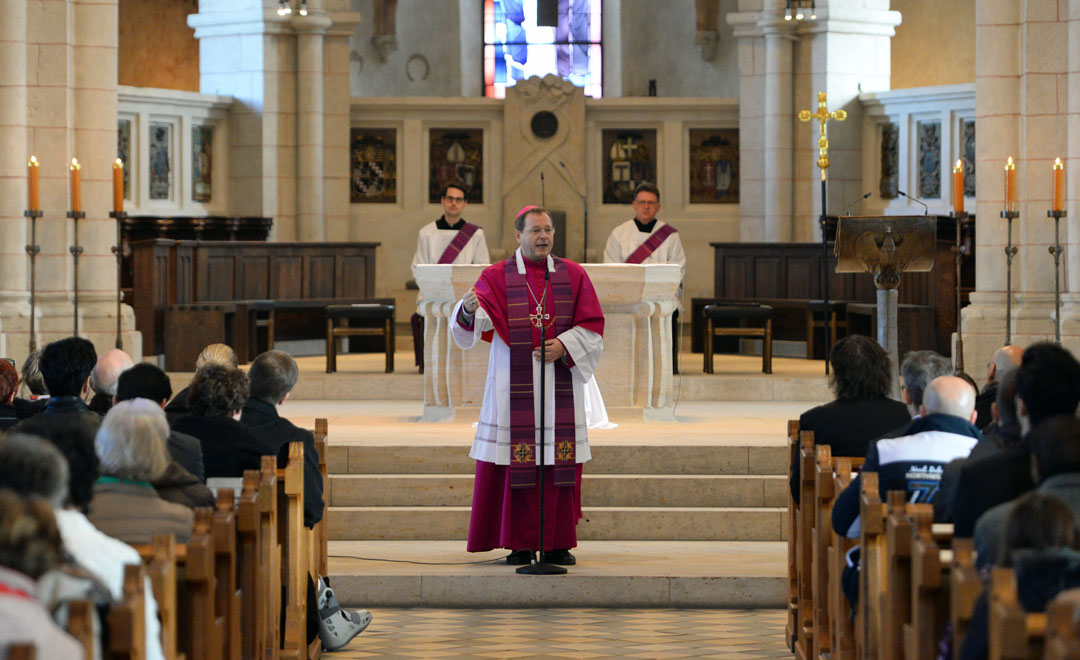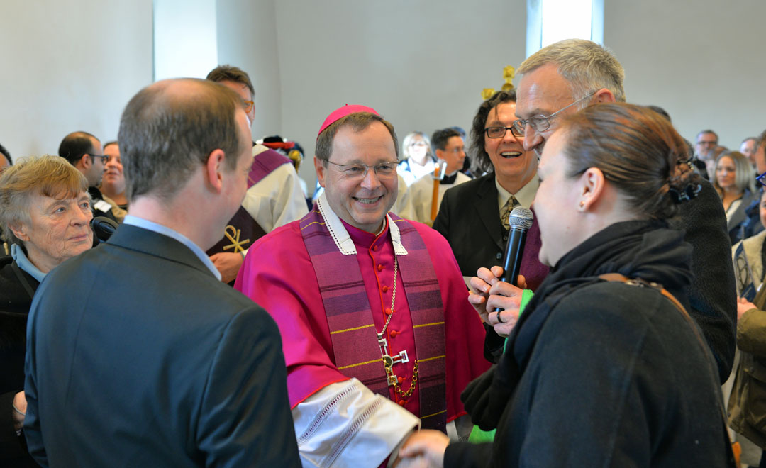 LIMBURG.- Durch Handauflegung und Segensgebet hat Bischof Georg Bätzing am Sonntag, 5. März, rund 40 Erwachsene zur Taufe zugelassen. "Ich freue mich sehr, dass sie den Weg des Glaubens gehen wollen. Damit machen sie uns, die den Glauben schon länger leben, viel Mut", sagte Bätzing zu den Bewerbern, die mit ihren Taufpaten und Begleitern in den Limburger Dom zu ihrer "Feier der Zulassung" gekommen waren. Bätzing befragte die Taufbewerber zu ihrem Willen, die Sakramente zu empfangen. Anschließend beauftragte er die zuständigen Pfarrer, an Ostern die drei "Sakramente der Christwerdung" - Taufe, Firmung und Eucharistie - zu erteilen.