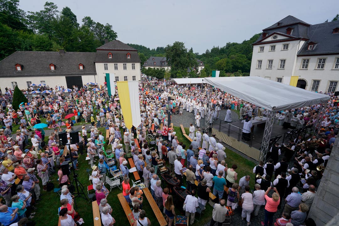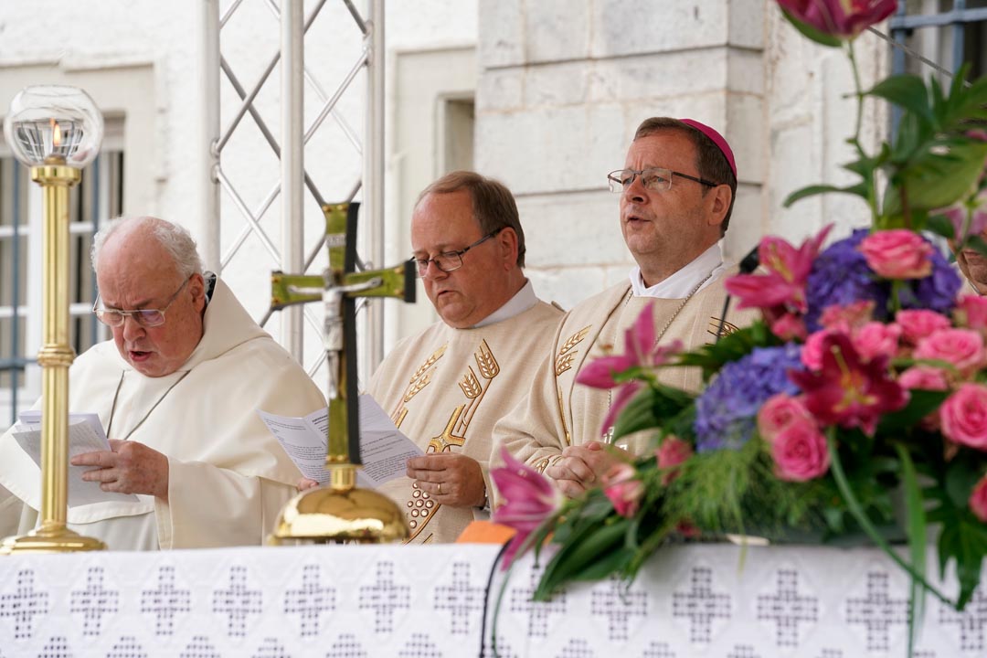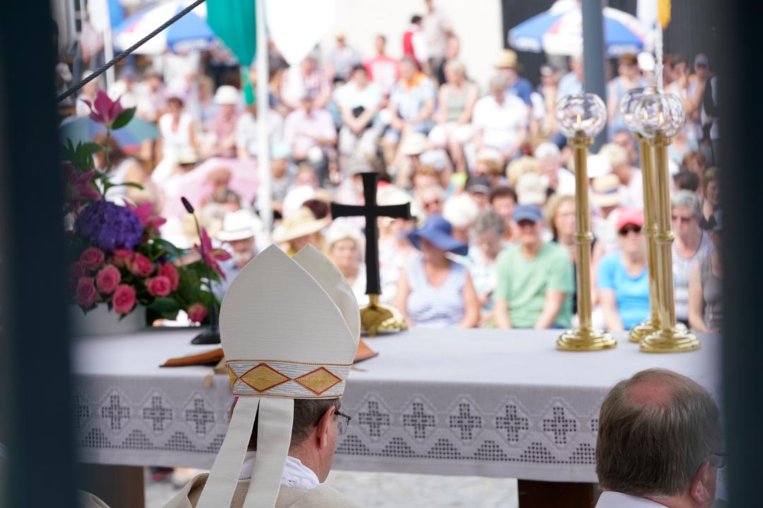 MARIENSTATT.- Marienstatt ist ein prägender und ausstrahlender Ort, der dadurch besonders wird, dass er einen Bezug zum Alltag der Menschen hat. Dies hat Bischof Dr. Georg Bätzing am großen Wallfahrtstag, am Donnerstag, 22. Juni, deutlich gemacht. Mit mehreren tausend Pilgern aus dem gesamten Westerwald und weit darüber hinaus feierte er bei strahlendem Sonnerschein im Abteihof den Festgottesdienst und fand in seiner Predigt mutmachende Worte.