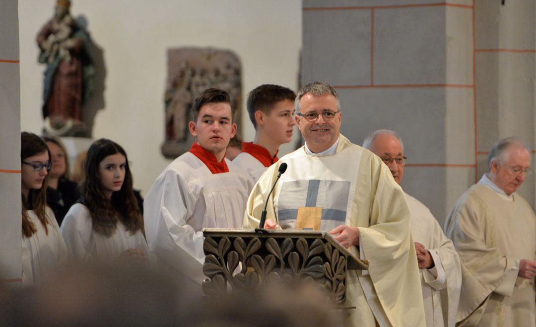 Bezirksdekan Heinz-Walter Barthenheier sprach von einem "historischen Tag" für die Gläubigen der neuen Pfarrgemeinde und dankte allen für ihre Mitarbeit während der Pfarreiwerdung. "Viele waren es, die diesen Weg mitgegangen sind", erklärte Barthenheier dankbar. Neben den Ehrenamtlichen in den unterschiedlichen Gremien der neuen Pfarrei dankte er auch den Mitarbeitern im Pastoralteam und dem Pfarrbüro, die sich weit über ihre Pflichten hinaus eingebracht und engagiert hätten.