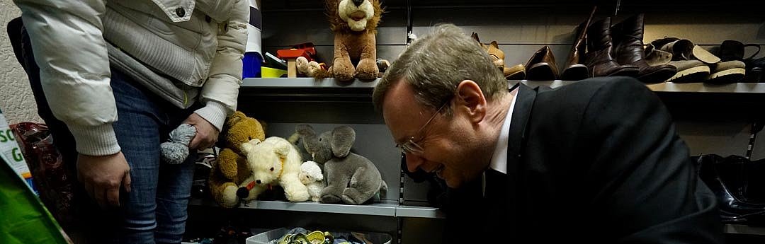 RHEIN-LAHN.- "Herzlich Willkommen. Wir sind stolz wie Bolle, dass Sie heute hier sind", rief Uschi Thorn Bischof Georg Bätzing zu, als er bei seiner Kennenlerntour durch das Bistum Limburg am Freitag, 27. Januar, im katholischen Bezirk Rhein-Lahn Station machte und den ökumenischen Kleiderladen "Sankt Martins Mantel" in Nassau besuchte. Uschi Thorn ist eine von insgesamt 15 Ehrenamtlichen, die sich um den Laden und um die Menschen kümmern, die als Kunden zu ihnen kommen um günstige Kleidung oder auch Haushaltswaren zu kaufen. "Wir sind hier vom Stamme "Nimm" und geben das, was wir bekommen, gerne an Menschen, die es brauchen, weiter", berichtet Thorn beim Rundgang durch den Laden. Seit einem Jahr gibt es das Angebot in einer ehemaligen Gaststätte in der Kaltbachstraße in Nassau nun. Grund zu feiern, denn die Initiative, hinter der die ökumenische Flüchtlingsinitiative Nassau steht, und die von vielen Organisationen und Stellen unterstützt wird, hat sich in dieser Zeit bereits zu einer wahren Erfolgsgeschichte entwickelt. Davon ist auch Bischof Georg überzeugt: "Ich bin begeistert. Dieser Laden ist ein Leuchtturm mit Strahlkraft und zeigt, was an Solidarität wachsen kann." Auch an dieser Initiative werde deutlich, dass Vieles in Kirche und Gesellschaft ohne ehrenamtliches Engagement nicht möglich wäre.