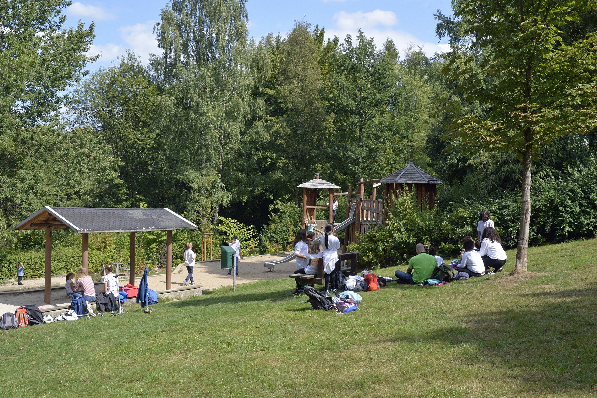 Bereits am Vormittag hatten sich die Kinder in der Stadthalle getroffen und in zwei Gruppen für das gemeinsame Friedensgebet am Nachmittag in der Pfarrkirche St. Peter in Ketten geprobt. Die Proben sei auch gut verlaufen, findet Brachtendorf: „Alle sind total motiviert. Das wird heute Abend eine große singende Kirche sein.“ Neben dem Proben gab es für die Jungen und Mädchen aber auch Freizeit: Auf dem Gelände am Quendelberg konnten sich die jungen Sängerinnen und Sänger auf dem Abenteuerspielplatz erholen.