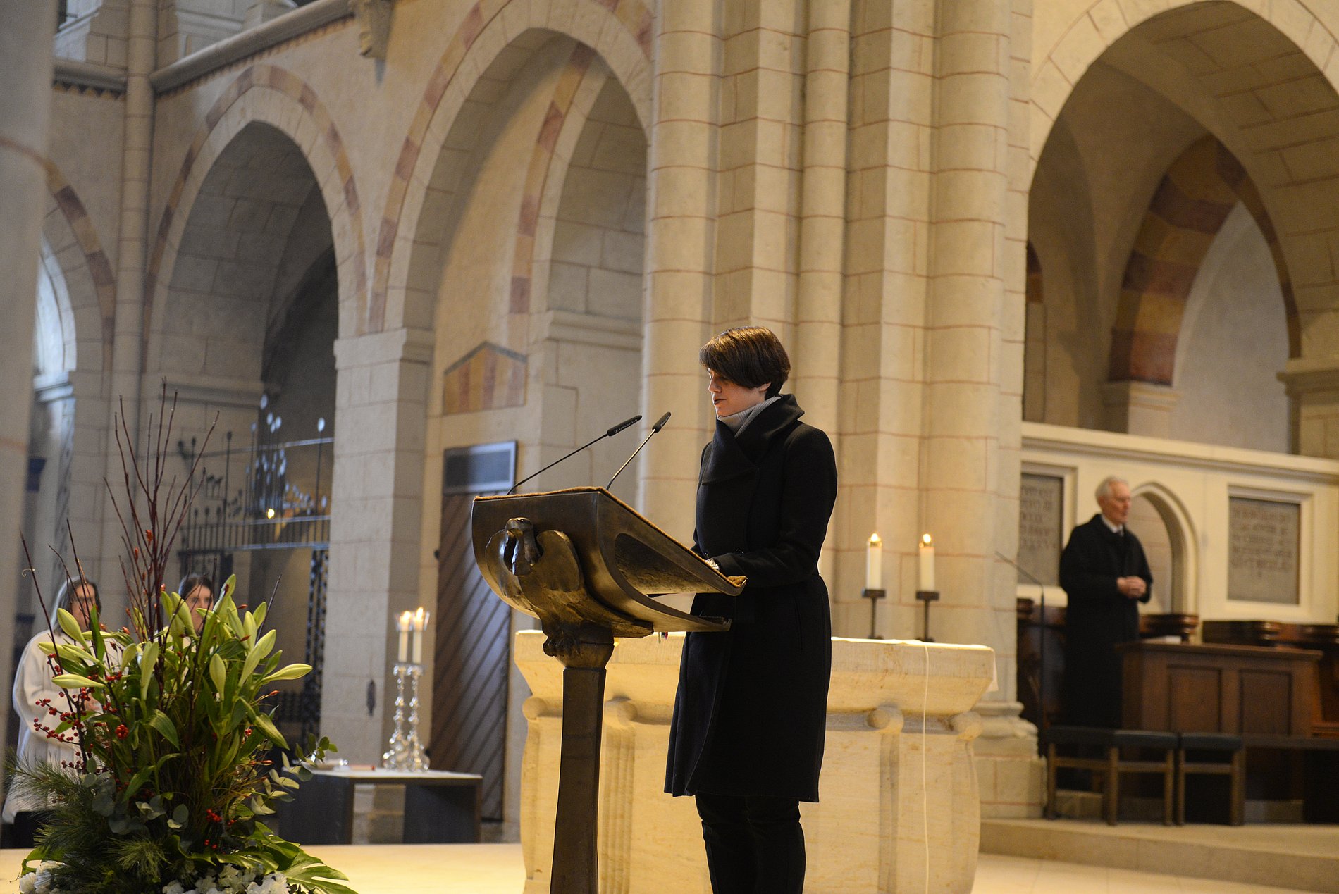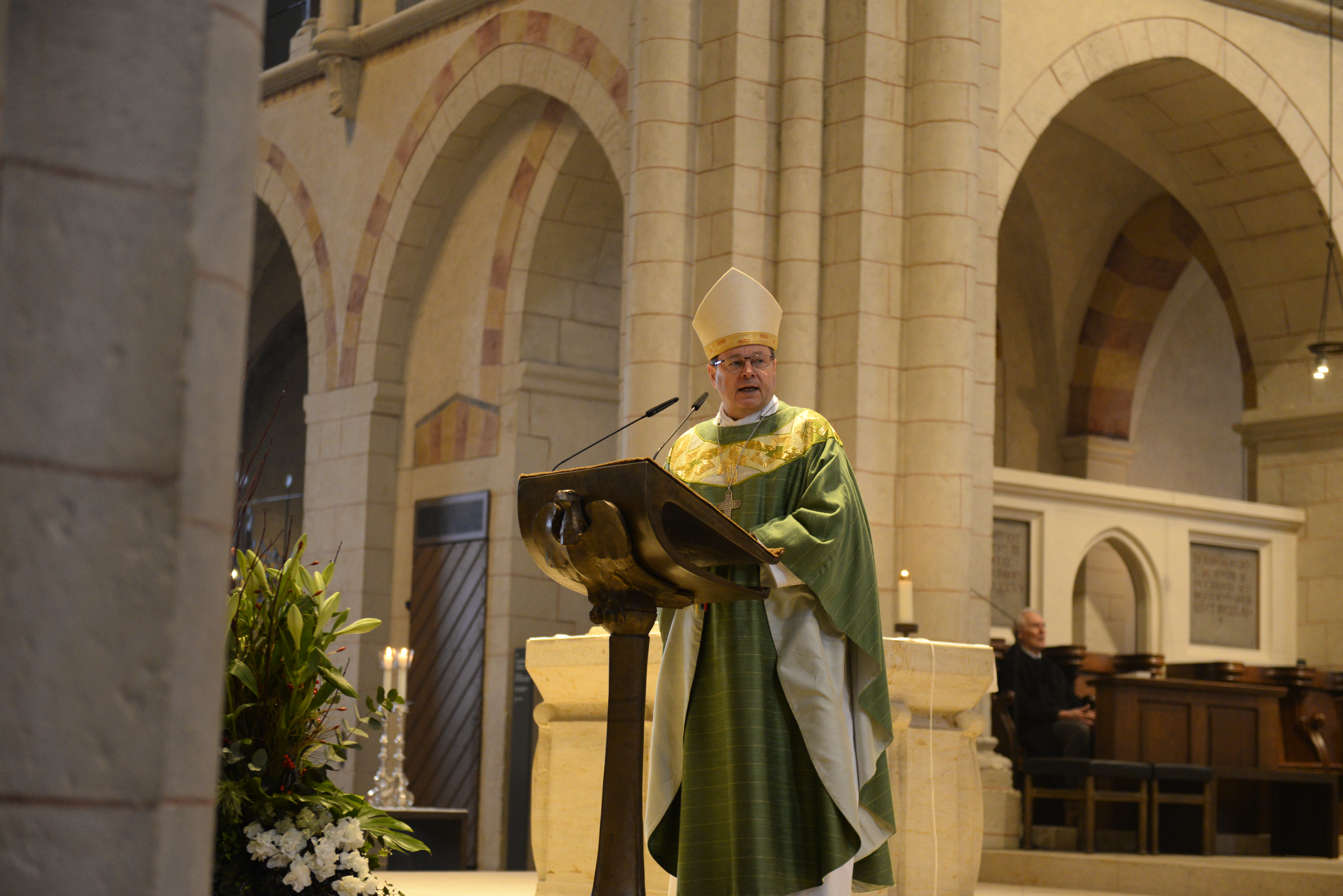 Im Mitarbeitergottesdienst vor dem Empfang griff Bischof Dr. Georg Bätzing in seiner Predigt die Frage auf, was der Mensch überhaupt ist. Die Antwort auf diese existenzielle Frage sei nicht leicht zu beantworten. Mit Blick auf das Lebenszeugnis von Alexander Gerst oder Asia Bibi werde deutlich, dass der Mensch „gläubig und bedroht, verwundbar und verletzend, mutig im Aufbruch und ängstlich zugleich, planend, gestaltend und doch so abhängig von Naturgewalten und Überraschungen“ sei. Er gebärde sich mächtig und sei doch so ohnmächtig. Mal leuchte er und mal sei es dunkel, wo er auftauche. Der Mensch sei ein Geheimnis und immer eine Entdeckung wert.