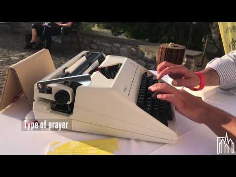 Gleich daneben steht Christopher Campbell von der Katholischen Erwachsenenbildung, vor sich auf dem Tisch eine alte Olympia-Schreibmaschine. „Wir tippen ein Gebet für dich“ ist auf dem Banner zu lesen. Ein junges Paar beäugt ein wenig unentschlossen das Arrangement. Der Mann gibt sich einen Ruck und tritt nach vorne, „Tommy“ stellt er sich vor und bittet um ein Gebet für seine Freundin Ivana. Sie lächelt und stellt sich neben ihn. Campbell wechselt noch ein paar Worte mit den zweien und haut dann kräftig in die Tasten. Sichtlich glücklich nehmen die beiden das Gebet mit. Er habe geschrieben, dass der Heilige Geist sie in ihrer Liebe begleiten möge, sagt der Referent der Erwachsenenbildung, der von den dankbaren Reaktionen der Menschen erzählt. Manche breiteten ihre ganze Lebensgeschichte vor ihm aus. Wer einen Seelsorger zum Zuhören braucht, ist hier auf dem Domplatz noch an anderer Stelle richtig. „Ich höre dir zu“ ist an zwei Klapptischen zu lesen, an denen später Seelsorger zum Gespräch unter vier Augen bereit stehen.