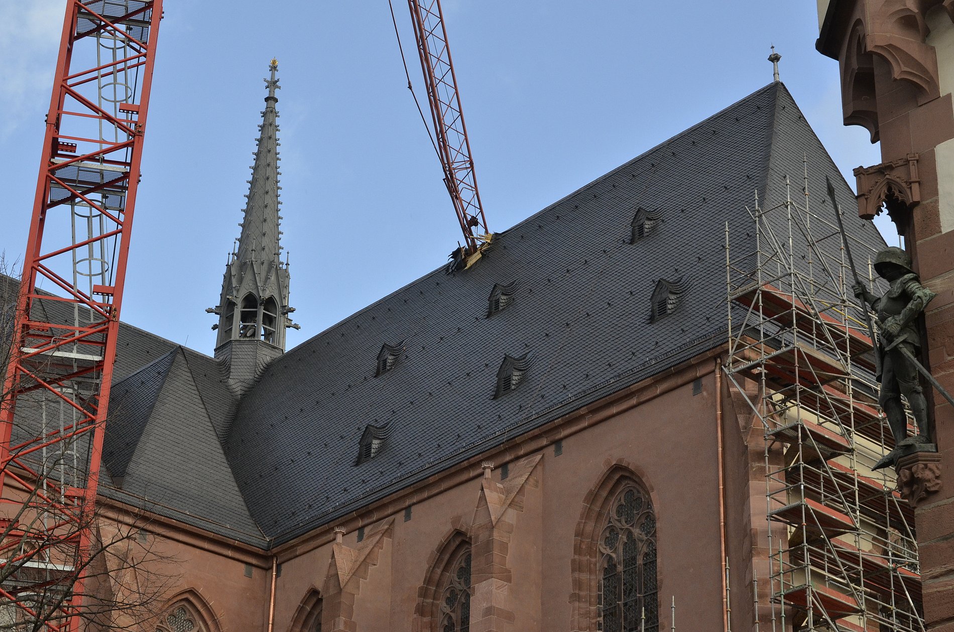 Der Abbau des Krans war für Donnerstag,13. Februar, geplant, da die Dach- und Fassadensanierung von Lang- und Querhaus des Doms weitgehend abgeschlossen ist. Der Dom bleibt bis auf weiteres geschlossen. Wegen der Sicherungsarbeiten sind Straßen und Gehwege im Bereich Krautmarkt und Weckmarkt gesperrt.