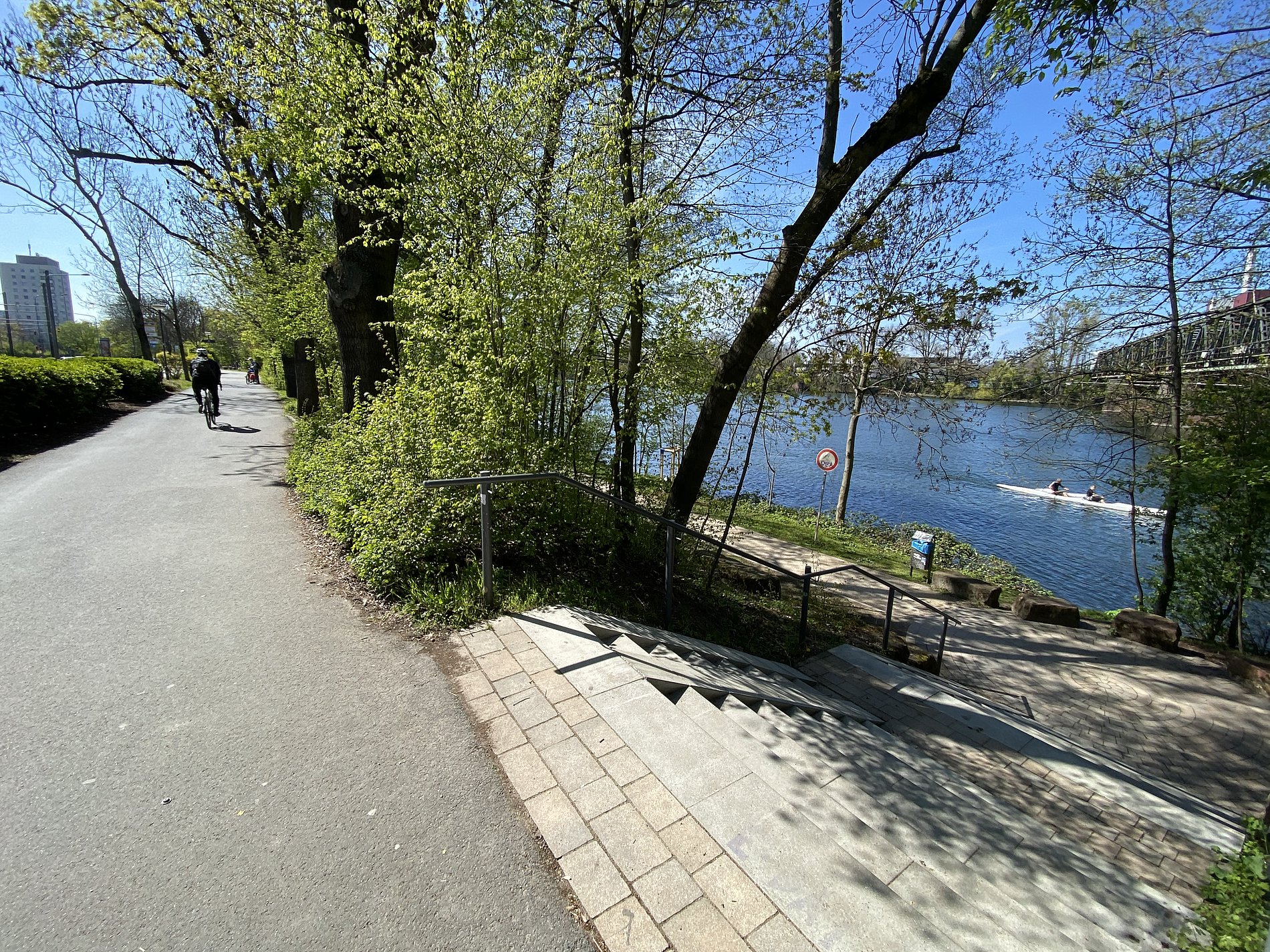 Zwischen Schiffen auf dem Main und Wolkenkratzern schlängelt sich ein Teil des Jakobswegs mitten durch Frankfurt. Die Projektgruppe „Barrierefreier Pilgerweg“ der Stabstelle Inklusion im Bistum Limburg hat zusammen mit der Hessischen St. Jakobusgesellschaft nun dafür gesorgt, dass diese knapp 15 km lange Teilstrecke barrierefrei für Menschen mit Behinderung ist.
