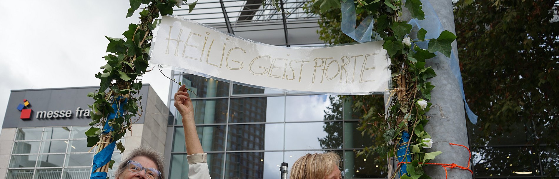 Segen und ein mit Grün geschmückter Bogen, dessen Durchschreiten den Teilnehmerinnen und Teilnehmern der Vollversammlung positive Energie geben soll: Maria 2.0 sei es wichtig, erneut ein positives Zeichen zu setzen. „Wir möchten unterstützen und wertzuschätzen, denn es wurde von den Synodalen ganz viel gearbeitet. Es braucht einen guten Geist – den Heiligen Geist – damit es ihnen weiter gelingt, aufeinander zuzugehen.“