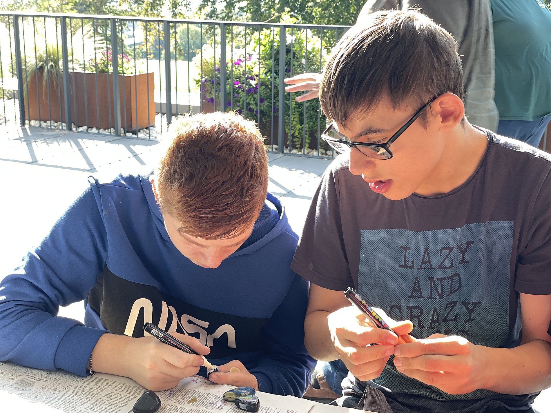 Am nächsten Tag, als die Gruppe aus Aulhausen hinzukam, lernten sich die Schülerinnen und Schüler beider Schulen kennen und hatten die Aufgabe, sich in Zweiergruppen zusammenzufinden, um sich vorzustellen. Dies geschah mithilfe von Steckbriefen, die die Jugendlichen zuvor angefertigt hatten. „Dabei zeigte sich, dass wir gemeinsame Hobbies haben. Dinge, die Jugendliche eben so tun: Musik hören, lesen, einige von uns singen auch“, berichtet Gloe. Auch in Bezug auf die Zukunft stellten sich Gemeinsamkeiten heraus, denn die Jugendlichen beider Schulen haben klare Ziele vor Augen. Gloe möchte später gerne Politik studieren und will sich dafür in der Schule anstrengen. Und auch Jennifer Akin, Schülerin des St. Vincenzstifts, hat genaue Vorstellungen für die Zeit nach der Schule. „Ich möchte gerne Verkäuferin werden – im Kino oder einem Supermarkt, weil ich es einfach mag, mit Menschen in Kontakt zu sein“, erzählt die 15-Jährige. Beim Gehen ist sie auf einen Rollator angewiesen. „Damit das klappt, muss ich die Schule gut abschließen und auch das Gehen lernen, damit ich auch Dinge tragen kann. Dafür trainiere ich jeden Tag. Auch wenn ich manchmal Angst habe, dass ich es nicht schaffe, bin ich ein Mensch, der an sich selbst glaubt“, sagt sie. Mit Liegestützen, Kickboxen und Ausdauertraining übt sie, damit sie mehr Kraft bekommt. Ihr größter Wunsch: „Dass meine Krankheit heilt und ich hoffentlich bald richtig laufen kann.“