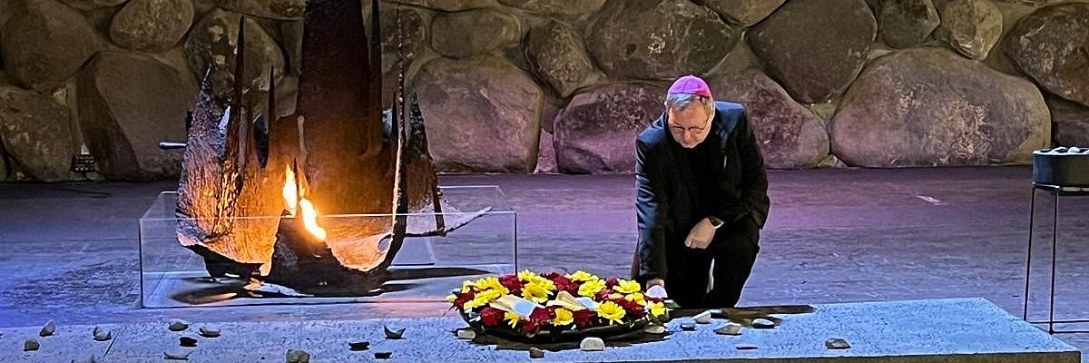 „Die Erinnerung an die Shoah, die an diesem Ort einen so starken Ausdruck findet, ist nicht nur eine bleibende Verpflichtung für jede deutsche Staatsbürgerin und jeden deutschen Staatsbürger, sondern gehört auch zur christlichen Grundüberzeugung: Die Juden sind unsere Schwestern und Brüder. Nie wieder darf ihnen wiederfahren, was sie in der Zeit des Nationalsozialismus erlebt haben. Wir stehen als katholische Kirche unverbrüchlich an der Seite der Jüdinnen und Juden – in Deutschland und in Israel“, so Bischof Bätzing nach einer Kranzniederlegung in Yad Vashem.