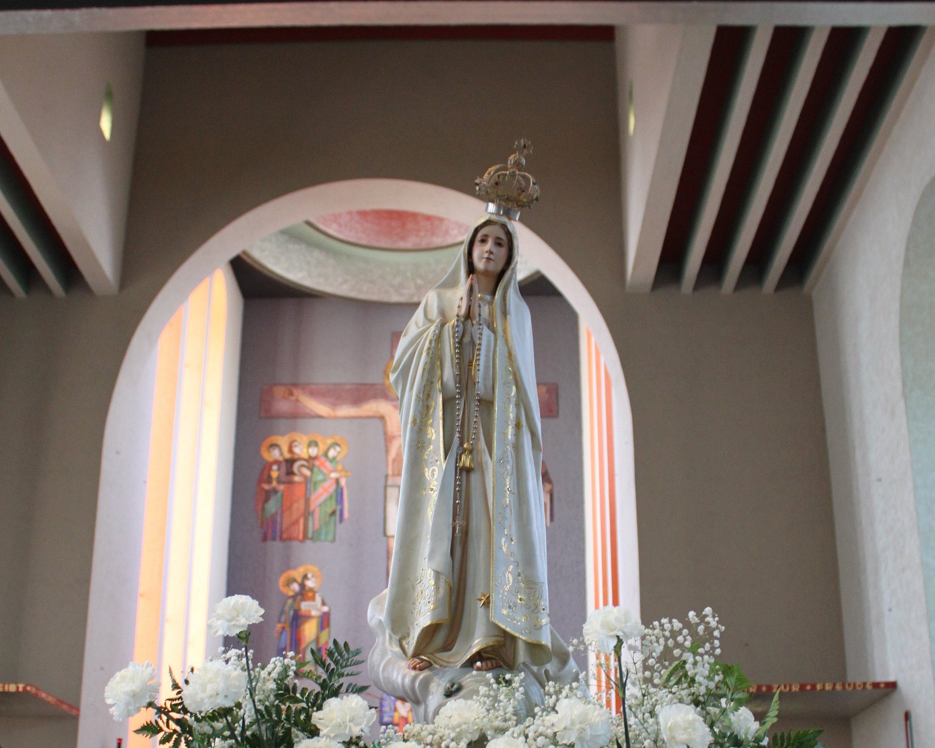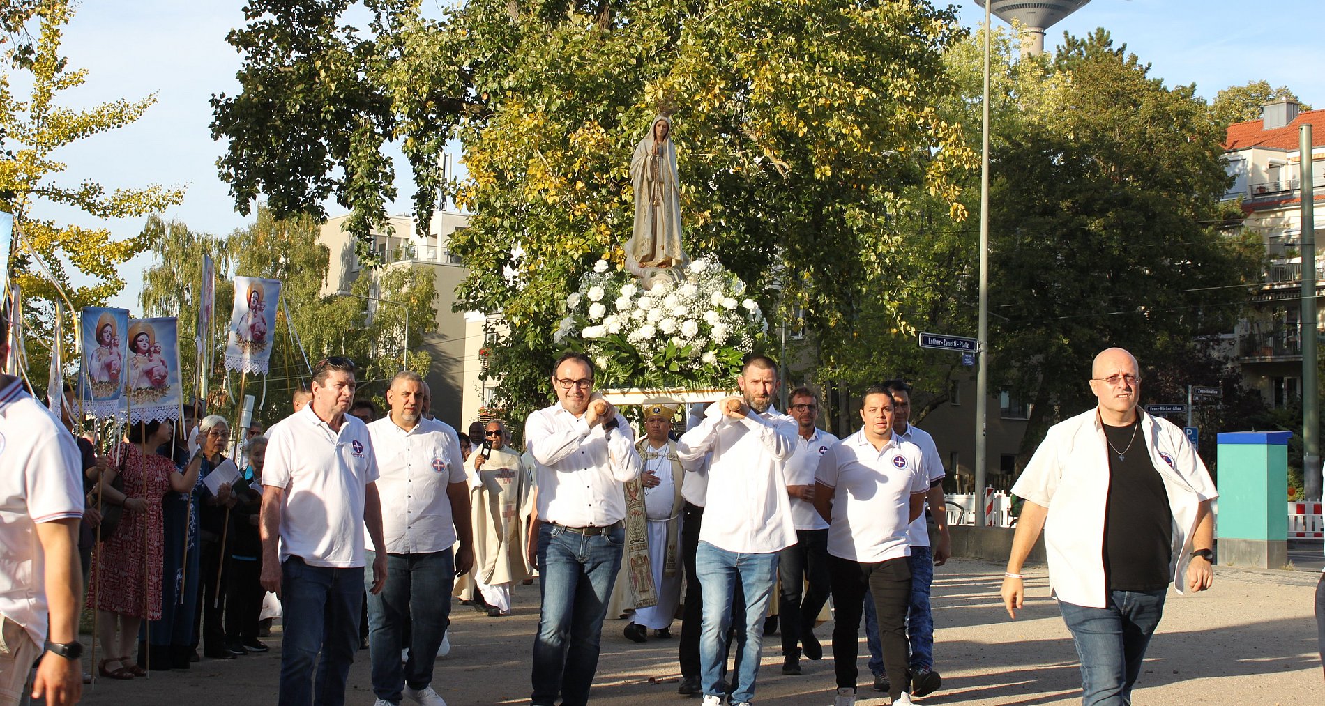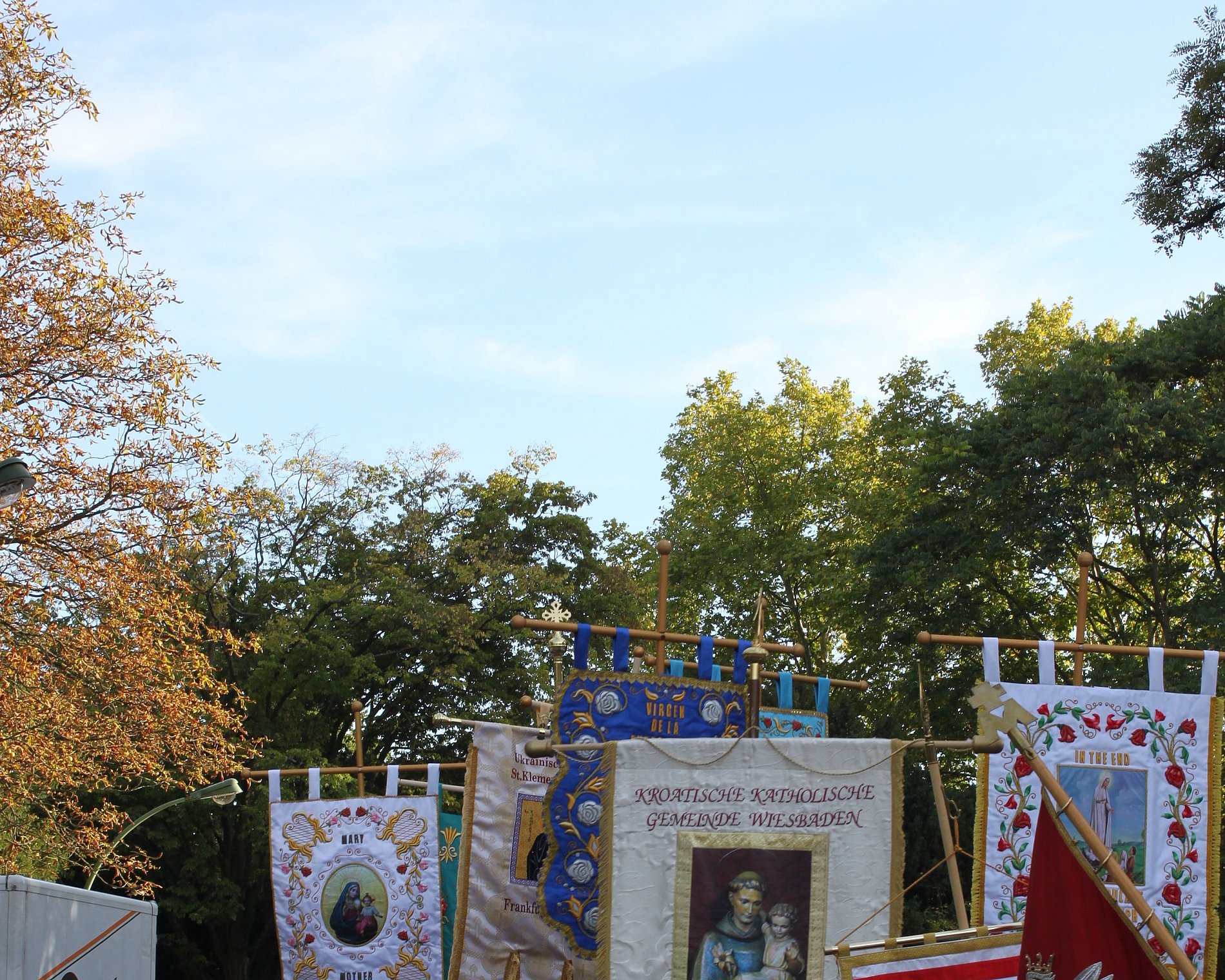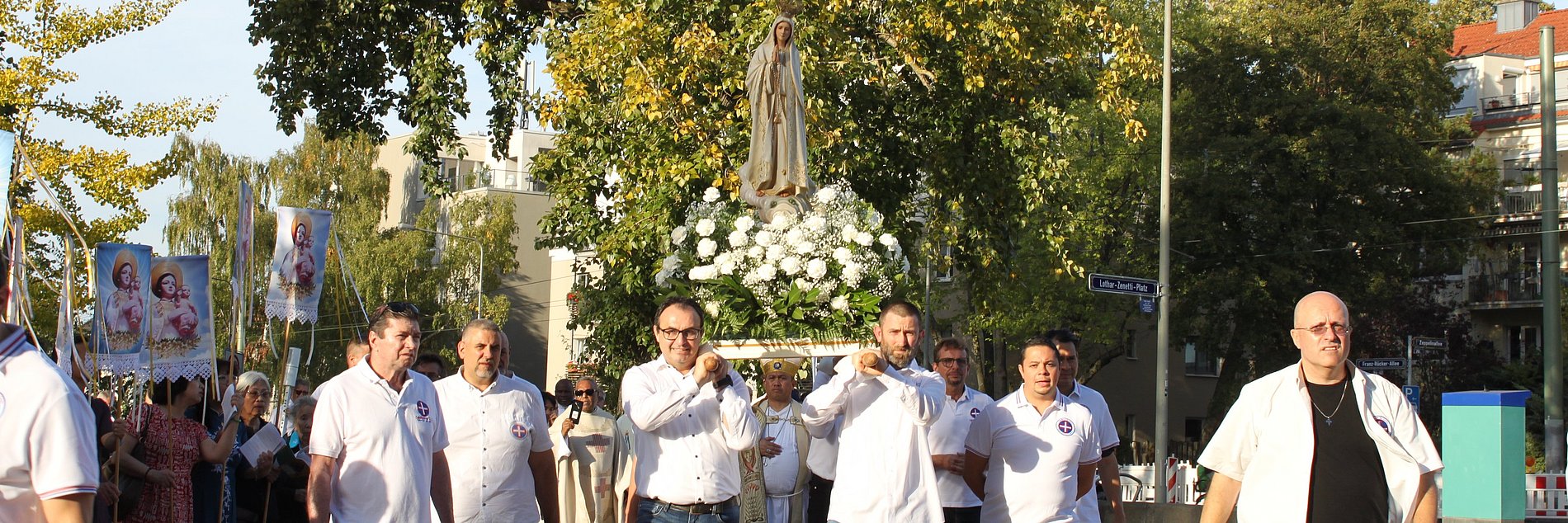 Eindrücke vom Fest Mariä Geburt in und um die Frauenfriedenskirche: Mit viel Liebe und Engagement feiern die Muttersprachlichen Gemeinden und Pfarreien des Bistums jedes Jahr den Festgottesdienst "Mutter aller Völker" in Bockenheim. Anschließend wird, auch das ist Tradition, die geschmückte Marienstatue in einer Prozession um den Kirchplatz getragen.