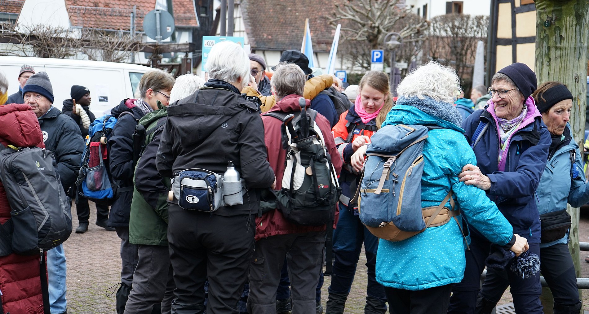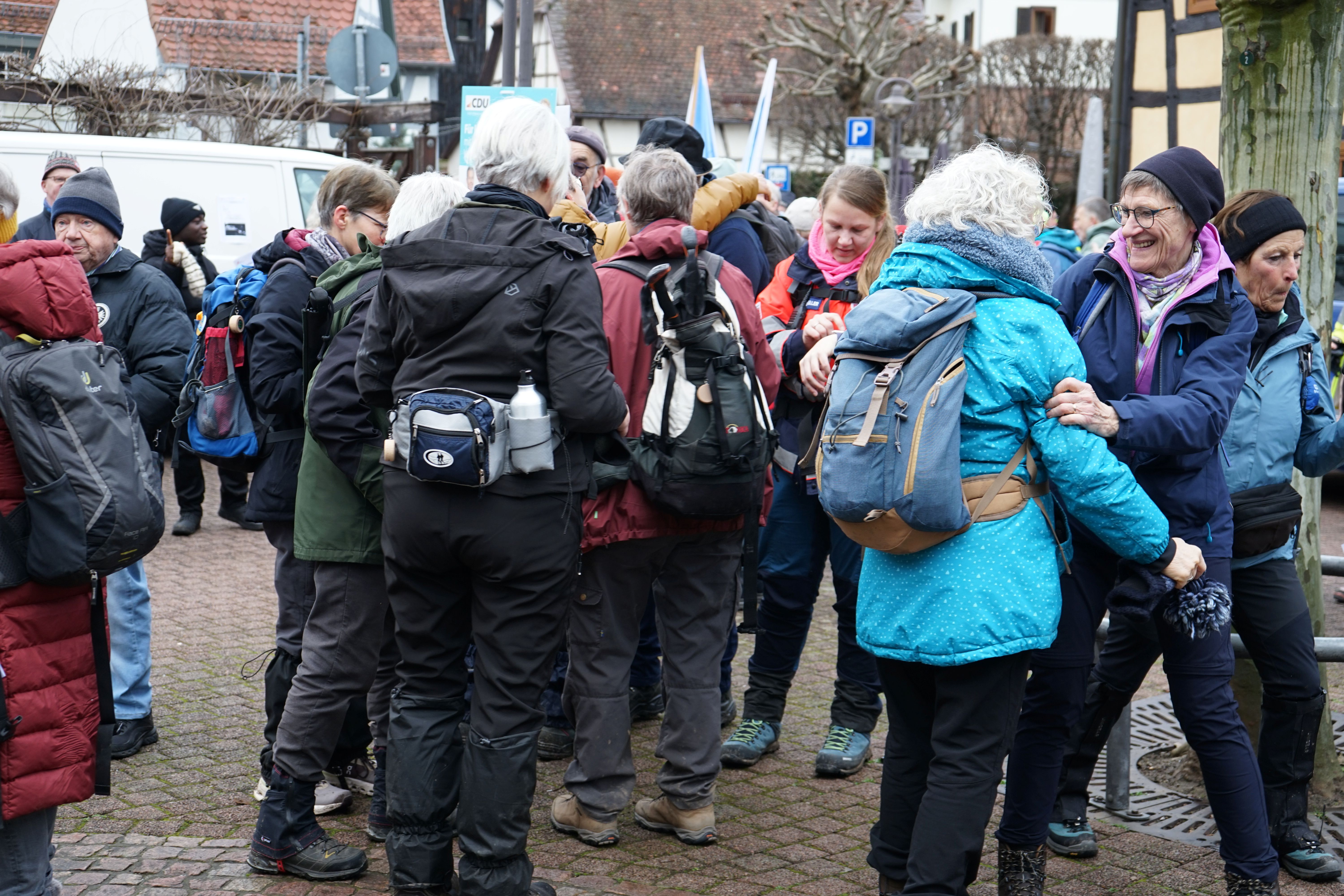 Als die Pilgerinnen und Pilger der Misereor-Hungertuchwallfahrt aus verschiedenen Richtungen am Samstagmorgen auf dem Hofheimer Tiverton-Platz einzogen, gab es Applaus für das Durchhaltevermögen der Wandernden, die teils Tagesetappen von 20 bis 25 Kilometern zurückgelegt hatten. „Den Weg nimmt man, wie er kommt“, sagte Bärbel Weber von der Paderborner Gruppe, die sich unter anderem durch starke Schneefälle kämpfen musste. Vor allem die Begegnungen in den Gemeinden hob sie als besonderes Highlight hervor. „Das trägt einen weiter!“