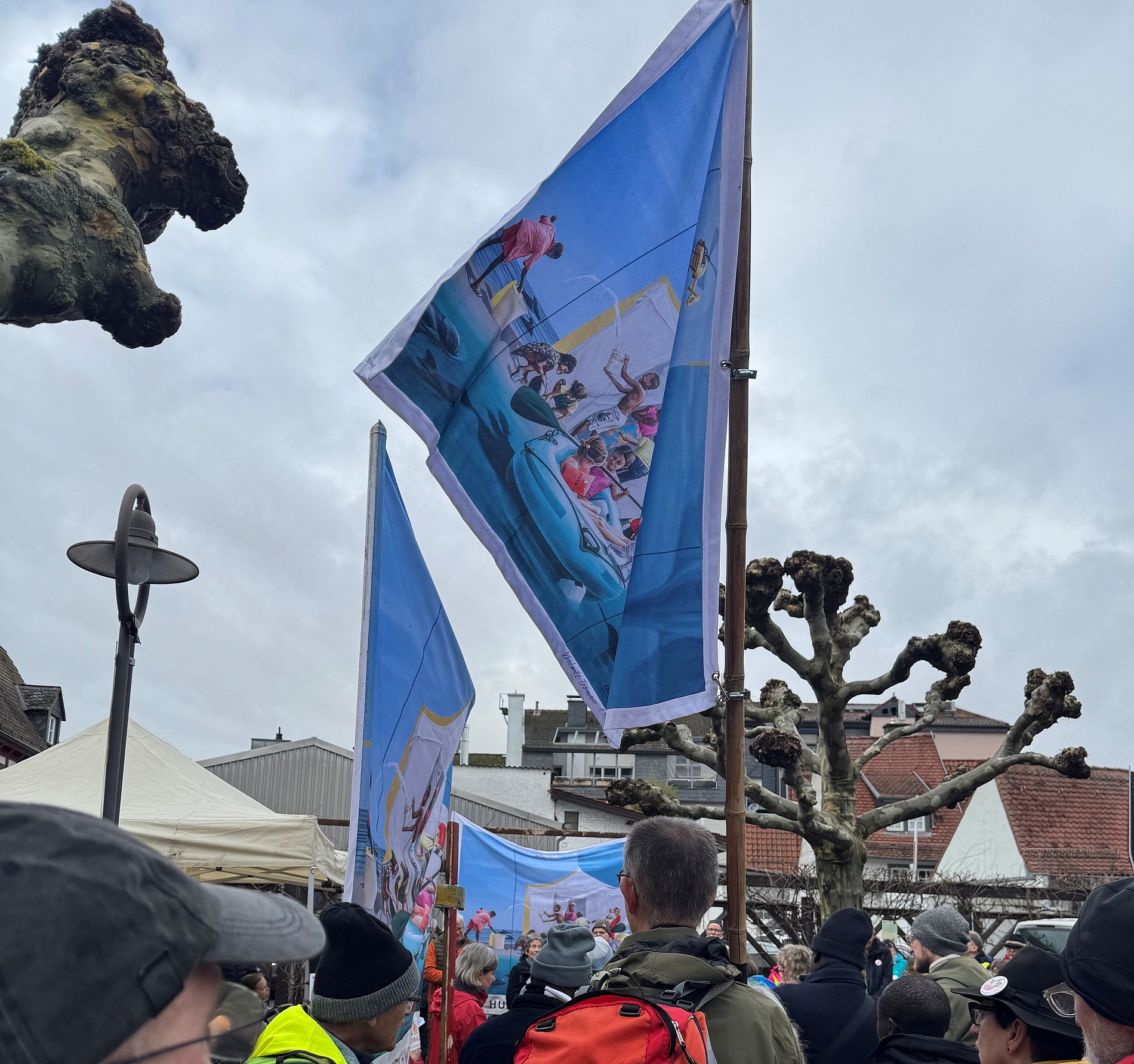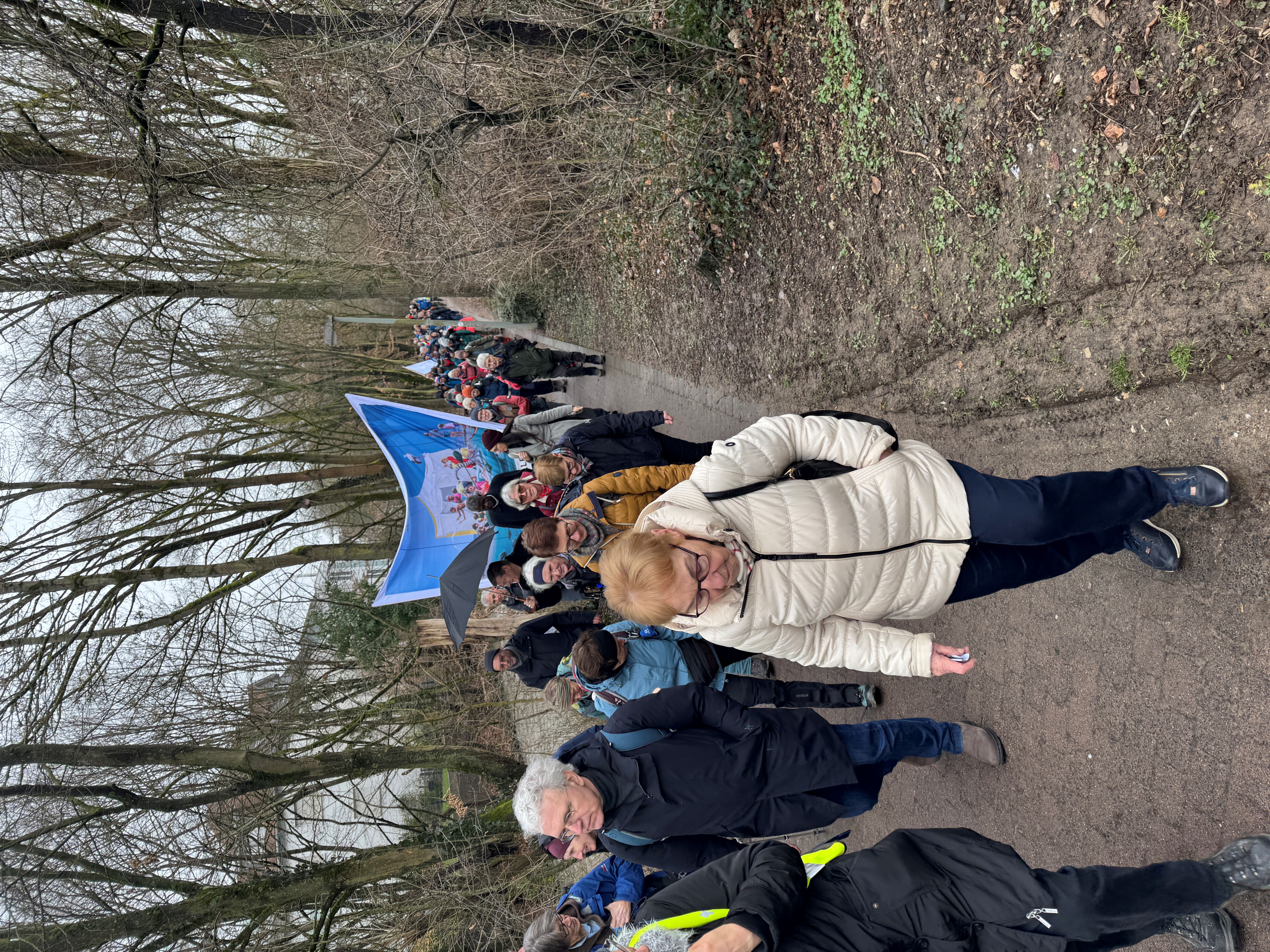 Auf dem Tiverton-Platz lud die AG Kamerun des Bistums Limburg zum Friedensgebet als Statio der Misereor Hungertuchwallfahrt ein. Die letzten Kilometer der Hungertuchwallfahrt legten die rund 120 Pilgernden dann gemeinsam zurück. Am Schwarzbach entlang zog die Wallfahrerschar im langen Zug nach St. Vitus Kriftel, wo der Freiburger Erzbischof Stephan Burger und Samuel Kleda, Erzbischof von Duoala, mit allen einen Wallfahrtsgottesdienst feierten.