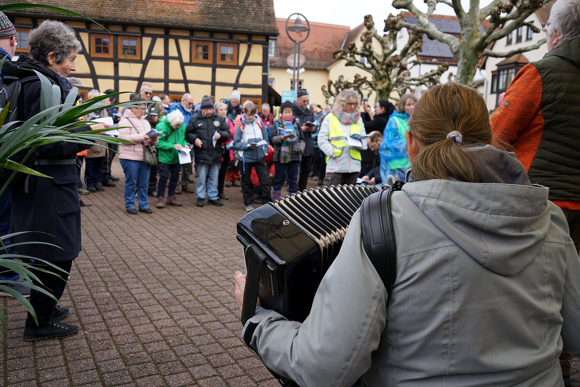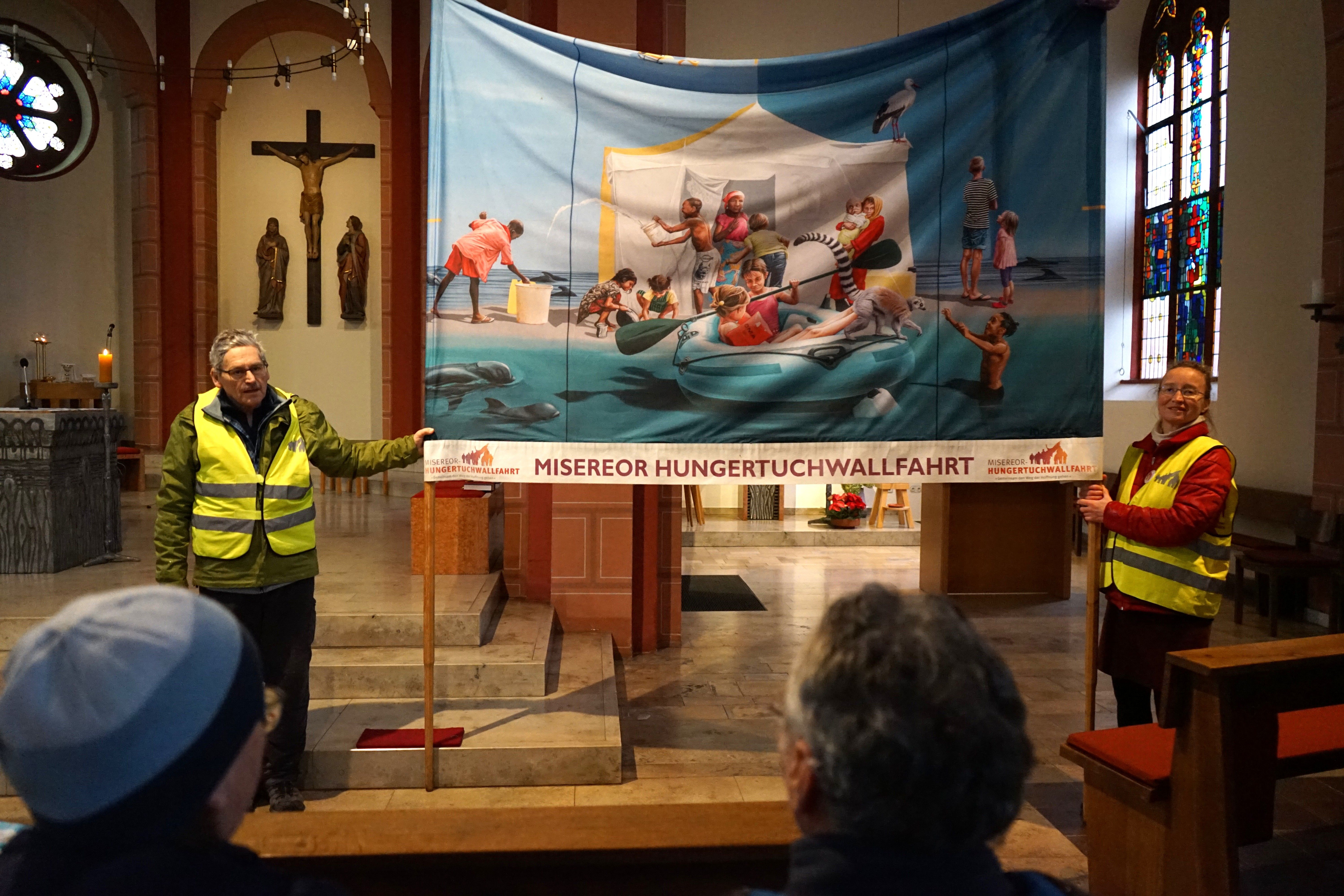 Herzlicher Empfang der Pilgerinnen und Pilger der Misereor-Hungertuchwallfahrt in Hofheim