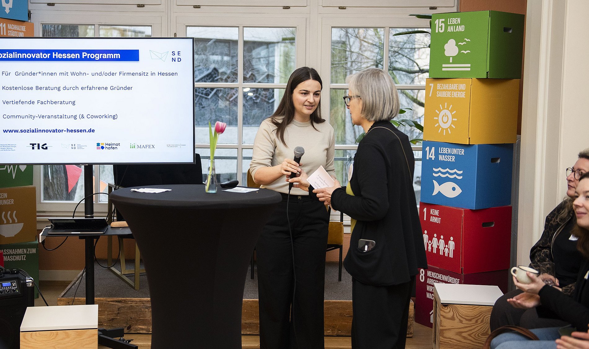 Beim ersten Termin sprach Patrick Mijnals „mit zwei Hüten“: Einerseits als Vertreter von Sozialinnovator Hessen, andererseits als Ansprechpartner für Community- und Innovationsmanagement der Villa Gründergeist. Agnesa Kolica stellte als Regionalsprecherin für Hessen „SEND – Social Entrepreneurship Netzwerk Deutschland e. V.“ vor und berichtete zugleich von ihrem eigenen Weg als Gründerin von „Grow together Germany“.