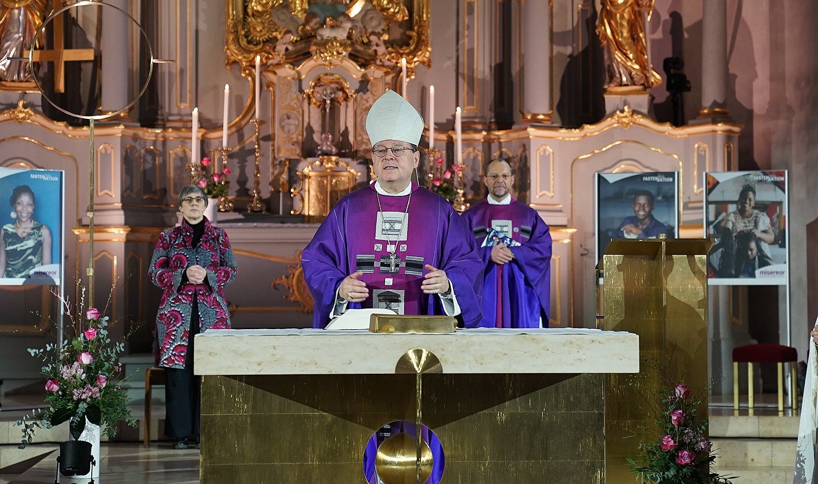 Bischof Georg Bätzing feierte einen Gottesdienst in der Kirche St. Peter und Paul in Hofheim. Gemeinsam mit der bischöflichen Bevollmächtigten Hildegard Wustmans predigte er zum Leitwort der Aktion „Hier fängt Zukunft an“.