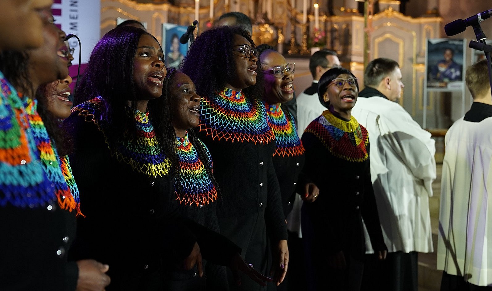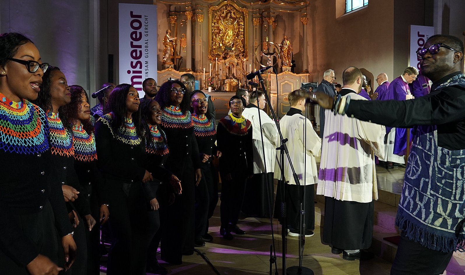 Bischof Georg Bätzing betonte auf der Bühne in der Stadthalle in Hofheim die Partnerschaft mit dem Bistum Kumbo in Kamerun. Seit vielen Jahren herrscht dort ein Konflikt und ein Krieg, bei dem bereits viele Menschen ums Leben kamen. Daher ist es schwierig, diese Partnerschaft zu leben, insofern, dass gegenseitige Besuche nicht möglich sind. Menschen aus Kumbo können zwar ins Bistum Limburg kommen. Umgekehrt ist es jedoch nicht möglich, Kumbo zu besuchen. Das Bistum Limburg sei jedoch weiter mit dem Bistum Kumbo verbunden und unterstütze verschiedene Projekte.