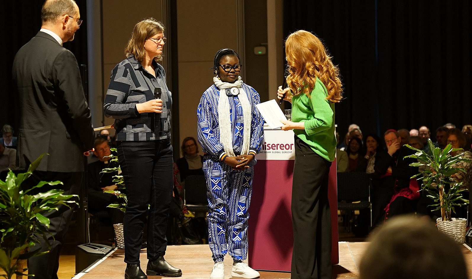 In der Stadthalle in Hofheim stand das Motto „Hier fängt Zukunft an“ noch einmal anders im Mittelpunkt. Zu Wort kam beispielsweise Pauline Maiday, eine junge Frau aus Kamerun, die durch das Projekt CODAS-Caritas Douala gefördert wurde und dadurch ihre eigene Boutique für Taschen eröffnen konnte. Studiert hatte Maiday Jura, dann eine Ausbildung in der Logistik gemacht und war trotzdem arbeitslos. Durch CODAS-Caritas Douala konnte sie ihren Traum eines eigenen Ladens verwirklichen.