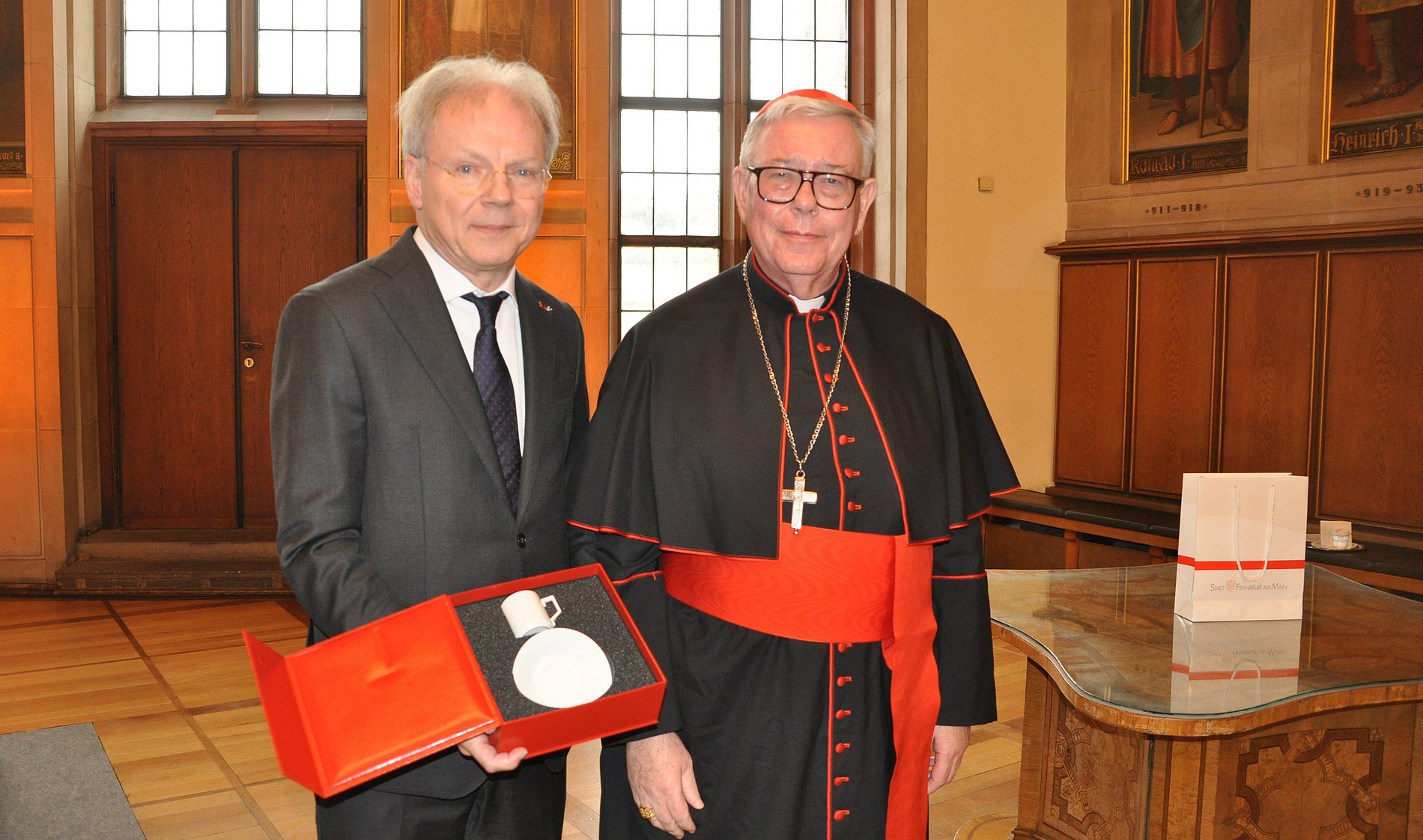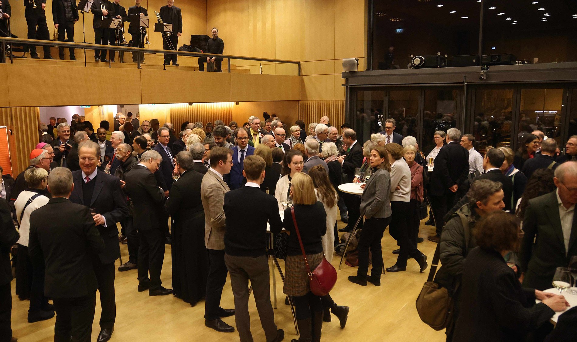 Kardinal Hollerich bedankte sich für den herzlichen Empfang und berichtete, dass ihn während seiner Studienzeit in Sankt Georgen 1989 und 1990 besonders die Weltoffenheit Frankfurts tief beeindruckt habe. Karl der Große sei ein neugieriger Herrscher gewesen, der offen mit anderen Kulturen in den Austausch getreten sei, und diese Offenheit sei prägend für die Stadt Frankfurt. Europa beschrieb er als Potpourri verschiedener positiver Einflüsse. „Die europäische Kultur hat das Gute aller Kontinente übernommen. Danach sind wir aber leider behäbig geworden.“ Und auch ein Stückweit arrogant, ließ er durchblicken. Wenn Europa von oben herab auf andere Weltanschauungen blicke, sei das „dumm und überhaupt nicht christlich“, so Hollerich: „Ich hoffe, dass Europa die Fähigkeit behält, umzudenken, und aus dieser Lethargie herauskommt. Denn wenn man nicht mehr bereit ist, umzudenken, ist man tot.“
