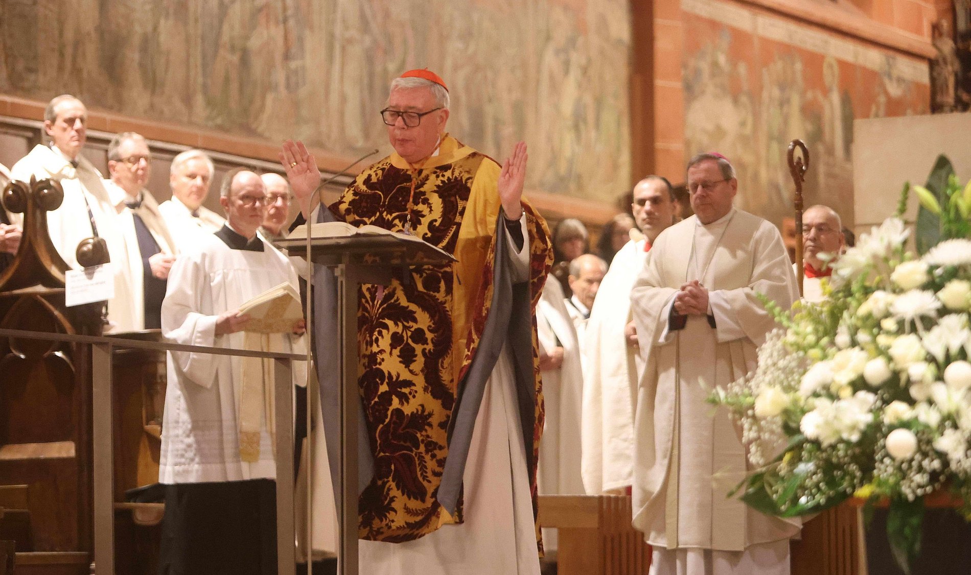 „Kein Land hat das Recht, andere Länder zu überfallen, ihre Ölreserven oder ihr Wasser zu nehmen.“ Das sagte der luxemburgische Kardinal und Erzbischof Jean-Claude Hollerich am Samstagabend beim Karlsamt in seiner Predigt – und wurde damit ungewöhnlich politisch. Hollerich, der in diesem Jahr als Gast die jährliche Messe in Erinnerung an Kaiser Karl den Großen zelebrierte, stellte aktuelle weltpolitische Geschehnisse in enge Verbindung zur Zeit des Gründervaters von Europa (748 bis 814), der durch das Festlegen von Gesetzen – Kapitularien – dafür sorgte, dass alle Einwohner seines großen Reiches sich auf Recht und Gerechtigkeit berufen konnten. Kardinal Hollerich betonte: „Recht und Gerechtigkeit waren Dank Karls des Großen bisher Teil der internationalen Rechtsordnung, doch diese wird jetzt infrage gestellt. Das heißt, wir fallen in der Zeit zurück.“ Klar sei: Die Welt sei nicht da, um der Kirche zu dienen, sondern die Kirche sei da, um der Welt zu dienen. „Deshalb müssen wir eintreten für unseren Rechtsstaat, das gehört zu unserer Christenpflicht! Karl der Große hat uns heute daran erinnert“, so der luxemburgische Bischof. Für seine deutliche politische Linie bekam er spontan Applaus im Bartholomäusdom.