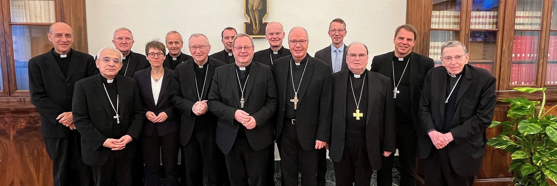 Von Seiten der Römischen Kurie nahmen die Kardinäle Victor Fernández, Kurt Koch, Pietro Parolin und Arthur Roche sowie Erzbischof Filippo Iannone O.Carm. teil. Seitens der Deutschen Bischofskonferenz waren die Bischöfe Stephan Ackermann, Georg Bätzing, Bertram Meier und Franz-Josef Overbeck sowie die Generalsekretärin Dr. Beate Gilles und der Pressesprecher Dr. Matthias Kopp anwesend. Als Gast hat an dem Gespräch außerdem Bischof Stefan Oster SDB teilgenommen.