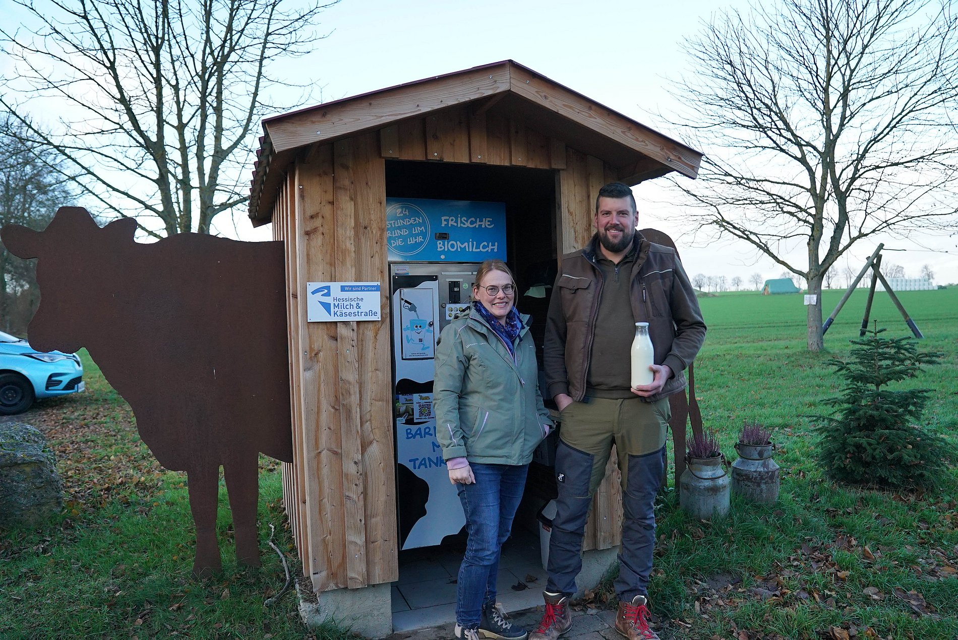 Unsere Haupteinnahmequelle ist die Milchviehhaltung, ergänzt durch Schweine, Hühner und Bienenhaltung. Wir setzen auf Direktvermarktung und bauen neben Futterpflanzen auch Speisegetreide, Kartoffeln und Zuckerrüben an. Der Tag beginnt früh: Um 6.30 Uhr geht es in den Stall, denn unsere 60 Milchkühe und die Nachzucht müssen zuerst versorgt werden. Nach dem Frühstück folgt dann alles, was gerade ansteht – sei es die Bewirtschaftung der Ackerflächen darunter auch Flächen der örtlichen Kirche, Instandhaltung oder, besonders im Winter, Büroarbeit. Abends geht es erneut in den Stall, bevor der Tag endet.