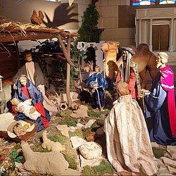 Eine ländliche Krippe, die vor über 100 Jahren im Westerwald geschaffen wurde, ist als „Armenkrippe“, mit damals selbst gestalteten Gipsfiguren zu sehen. Die Schafe sind, wie es damals üblich war, mit Windelstoffen eingehüllt. Eine Darstellung der Weihnachtsszene aus Olivenholz von 1995 ist ein Geschenk eines palästinensischen Arztes aus dem Caritas-Baby-Hospital in Bethlehem.
