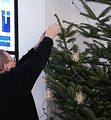 Der Countdown läuft, in wenigen Tagen feiern wir Heiligabend - um 17 Uhr mit einem Livestream aus der Kapelle des Limburger Bischofshauses. Bischof Bätzing und sein liturgischer Assistent Manuel Rumpf haben deshalb schon mal den Tannenbaum in der Kapelle geschmückt und die Krippe aufgestellt.