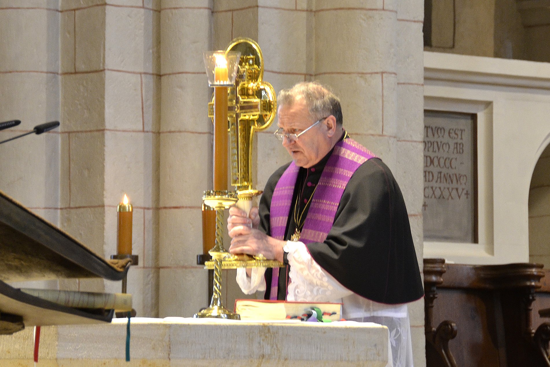 Beide haben in ihrer je eigenen Weise, ihrer je eigenen Berufung ihre Nachfolge Christi mit allen Konsequenzen gelebt, erklärt der Pallottiner Holzbach. Dabei sei weder Henkes noch Kaspers Nachfolge zweifelnd oder „tastend“ gewesen, sondern ausgesprochen mutig. Denn sie wussten sich, so Holzbach, auf Gottes Weg. Und dadurch wussten sie, dass sie für ihre Mitmenschen handeln mussten - im Pro oder im Kontra, dass sie reden, vermitteln, versöhnen oder Widerstand leisten mussten. Die Fastenpredigtreihe im Limburger Dom steht in diesem Jahr unter dem Motto: „Wofür Christen sich einsetzen: Pro und Contra“. Der Liturgie bei der vierten und letzten Fastenpredigt für dieses Jahr stand Domkapitular Gereon Rehberg vor.