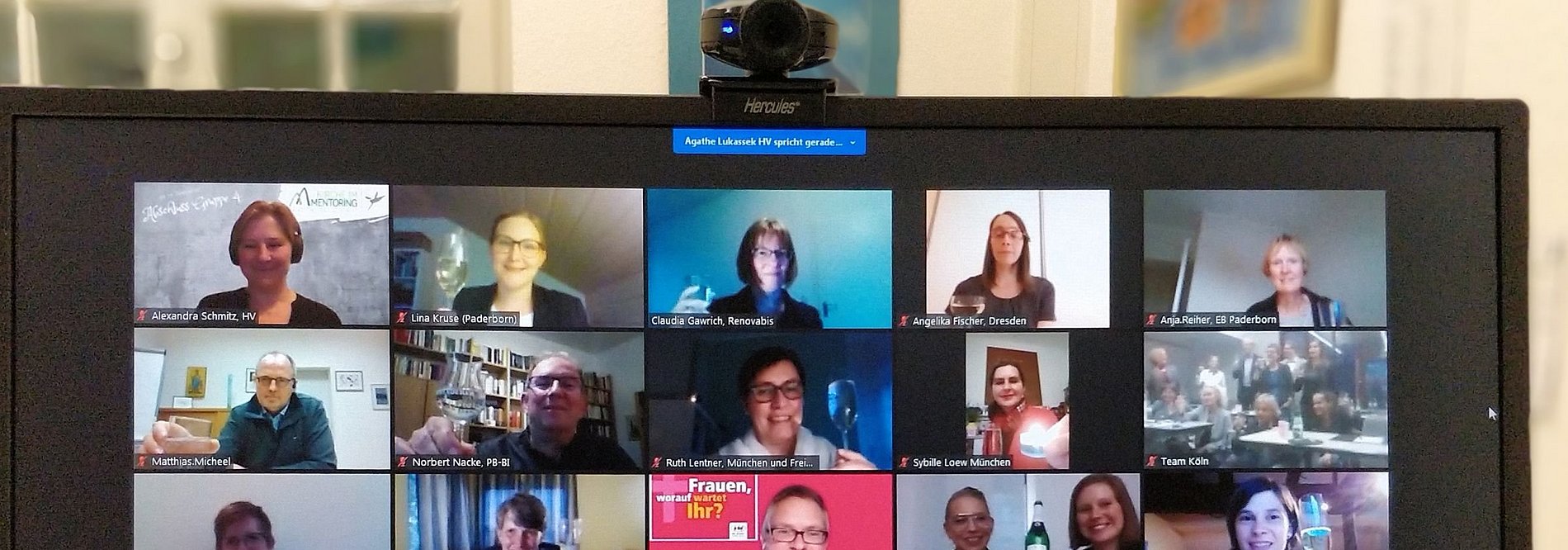 An der dreitägigen digitalen Abschlussveranstaltung mit Seminaren, Gottesdiensten und gemeinsamen Pausenräumen nahmen insgesamt 60 Personen teil. Ursprünglich war die Veranstaltung in der Katholischen Akademie Schwerte geplant. Teilnehmende der (Erz-)Bistümer Köln und Münster bezogen jeweils einen großen Raum eines diözesanen Tagungshauses und nahmen als Gruppe am Online-Festakt teil. Zu diesem öffentlichen Teil hatten die Mentees ihre Vorgesetzten eingeladen und die Projekte vorgestellt, denen sie sich ein Jahr lang gewidmet haben. „In diesem Jahr stellten die Mentees ihre Präsentationen innerhalb kürzester Zeit auf digital übermittelbare Formate um und bewiesen einmal mehr, wie schnell und kompetent sie auf neue Herausforderungen reagieren und agieren können,“ erklärten die Projektleiterinnen Alexandra Schmitz und Elena Stötzel. „Die aus der Not geborene Veranstaltung sehen wir als ein Mehrwert des Mentoring-Programms, weil dadurch digitales Netzwerken erlebbar wurde und digitale Kompetenzen erworben wurden. Die Mitwirkenden können diese Möglichkeit künftig stärker zum Austausch nutzen.“