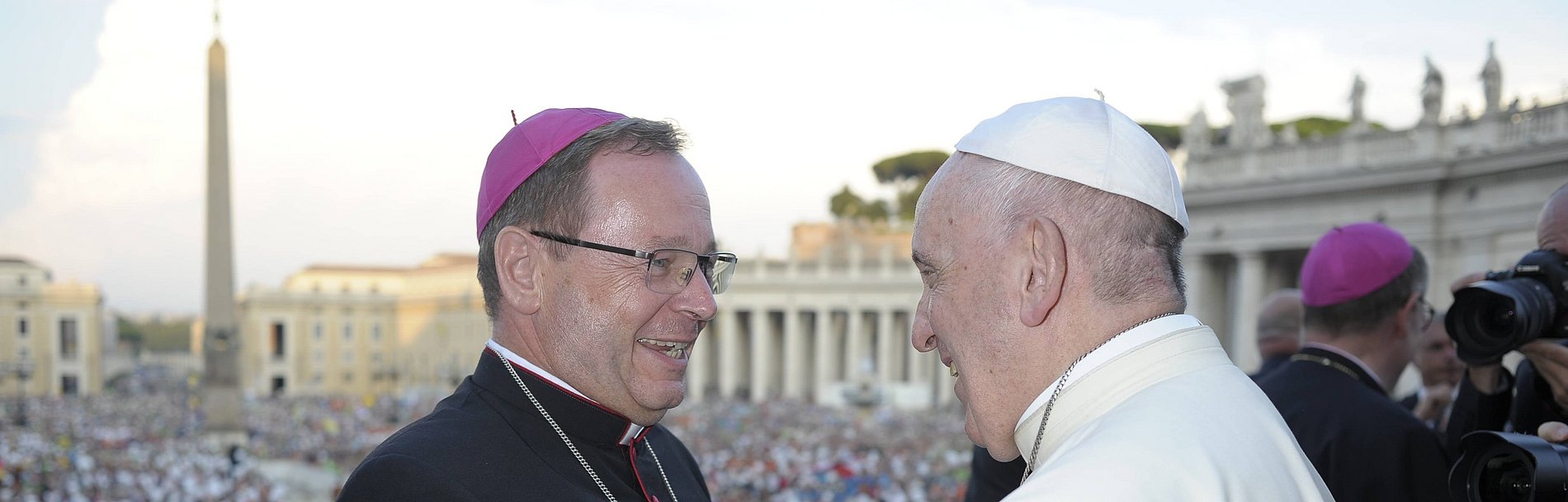 Ausdrücklich dankt Bätzing dem Papst für seine vielfachen Worte, den Menschen nicht aus dem Auge zu verlieren: „Daher ist es gut, wenn Sie uns mit Ihren Reisen und Worten immer wieder zeigen, wie wichtig es ist, an die Ränder der Gesellschaft zu gehen, Barmherzigkeit zu üben und Fragen der Menschenrechte und des Lebensschutzes in den Mittelpunkt der Aufmerksamkeit zu rücken.“