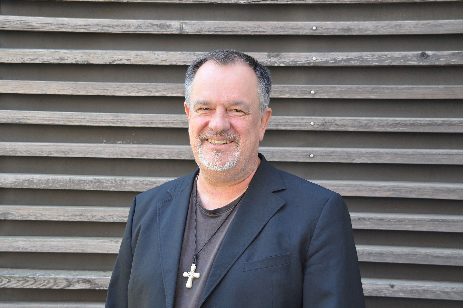 Schwarze Seiten, schwarzes Spitzdach: von außen erinnert erst einmal nichts an eine Kirche. Doch schaut man genauer hin, findet sich sehr wohl ein christliches Symbol. „Die Einfassung der Fenster auf der hinteren Seite, dort, wo es zur Mini-Terrasse geht, bildet ein Kreuz“, erklärt Pfarrer Werner Portugall der Pfarrei St. Jakobus in Frankfurt. Das Subtile gefällt ihm an dem Entwurf der Architekten von KOOP aus Weimar. Und es passt zum Konzept. Denn wenn die „Tiny Church“ hoffentlich im Frühling 2023 fertig ist und an ihrem Platz im Lyoner Quartier in Niederrad steht, soll sie ein Ort für alle Menschen im Stadtteil sein, egal ob christlich getauft oder nicht, egal ob gläubig oder nicht.