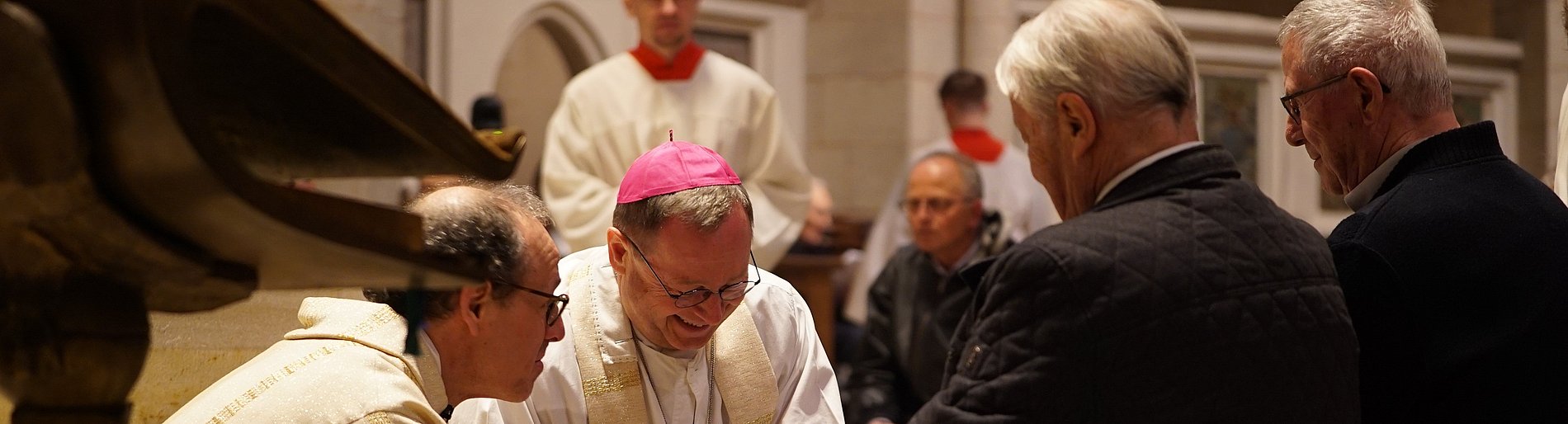 Während des Gottesdienstes wusch Bischof Bätzing Frauen und Männern, unter anderem aus der Limburger Dompfarrei, die Füße. Die Fußwaschung geht auf einen orientalischen Brauch zurück. Beim Betreten eines Hauses wuschen Diener den Gästen die Füße. In der Bibel ist es nicht der Diener, sondern Jesus, der Gastgeber, der seinen Jüngern die Füße wäscht.